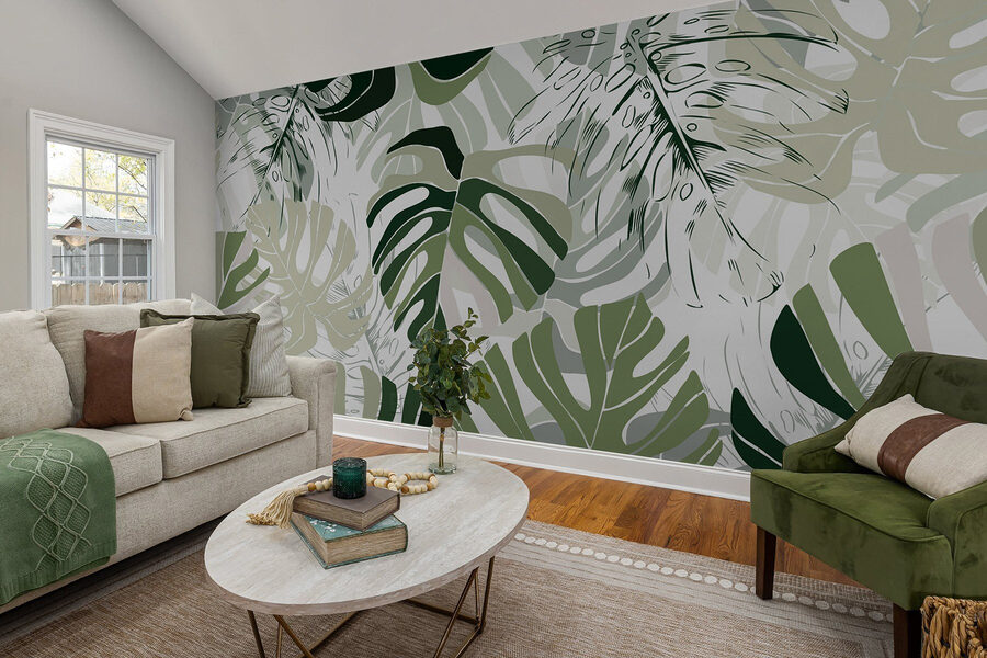 Premeňte obyčajnú stenu na žiarivý únik s touto krásnou fototapetou so vzorom listov. Predstavte si to: slnko prenikajúce cez vaše okno a tieto svieže zelené listy tancujúce na sviežom bielom pozadí. Je to ako interiérová džungľa bez otravných chrobákov! Tento dizajn dodá každej miestnosti osviežujúcu atmosféru – ideálny pre útulný čitateľský kútik alebo oživenie nudnej chodby. Predstavte si, že popíjate kávu obklopení týmto veselým lístím a cítite sa tak trochu ako na tropickej dovolenke. Je príťažlivý, svieži a vyžaruje z neho šarm prírody. Pripravte sa na to, že svojmu priestoru vdýchnete život!