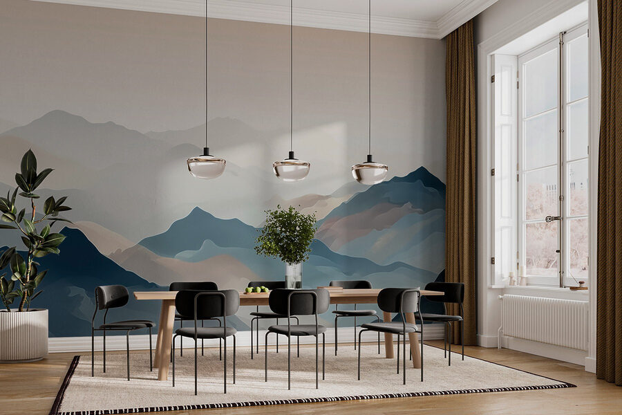 Predstavte si, že sa prebudíte v útulnej chate, slnko presvitá cez stromy a máte pocit, ako keby ste sledovali, ako hory ožívajú priamo pred vašimi očami. Táto „nástenná maľba horského masívu s hmlou“ úžasne zachytáva túto snovú atmosféru. Jemné akvarelové ťahy spájajú odtiene modrej a zemité tóny, čím vytvárajú atmosféru, ktorá šepká pokoj a mier. Je to ako jemné objatie vašich stien. Predstavte si to v kútiku na čítanie – zahnutí s dobrou knihou a teplým nápojom, úplne ponorení do pokojného výhľadu. Budete mať pocit, ako keby ste boli na nekonečnom dobrodružstve, aj keď len ležíte doma. Žiadne horolezecké vybavenie nie je potrebné!