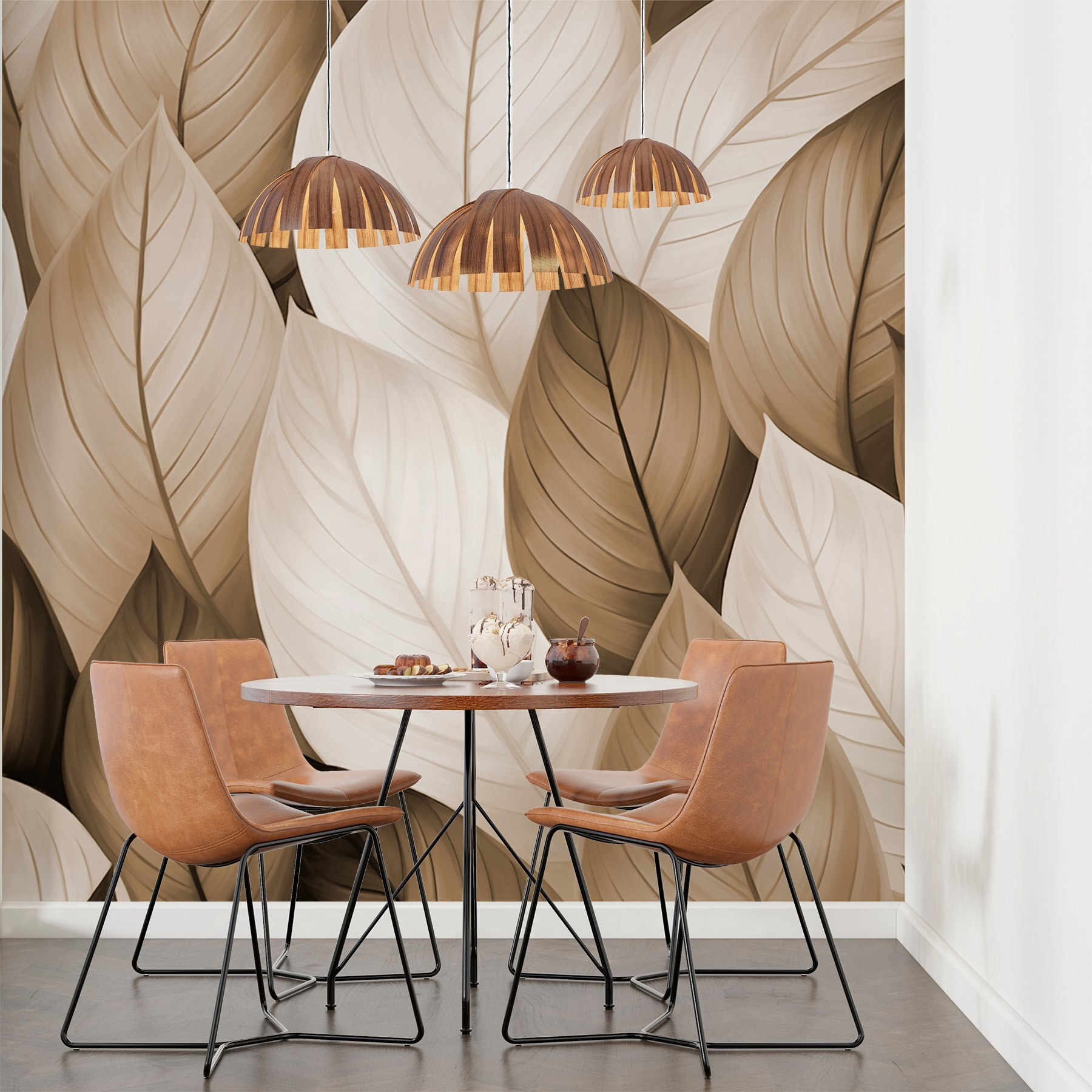 Transform any room into a serene oasis with this stunning mural featuring a tapestry of brown and white leaves. Imagine walking in and just being enveloped by nature’s calm embrace. The soft hues create a warm vibe, perfect for cozy evenings or bright, sunny mornings. It’s like having a little bit of the outdoors right inside your home, minus the bugs! Picture a gathering with friends, everyone feeling relaxed and happy, just because the walls feel like a peaceful forest. Perfect for a living room or even a tranquil bedroom retreat—just a few steps away from a mini vacation every day!