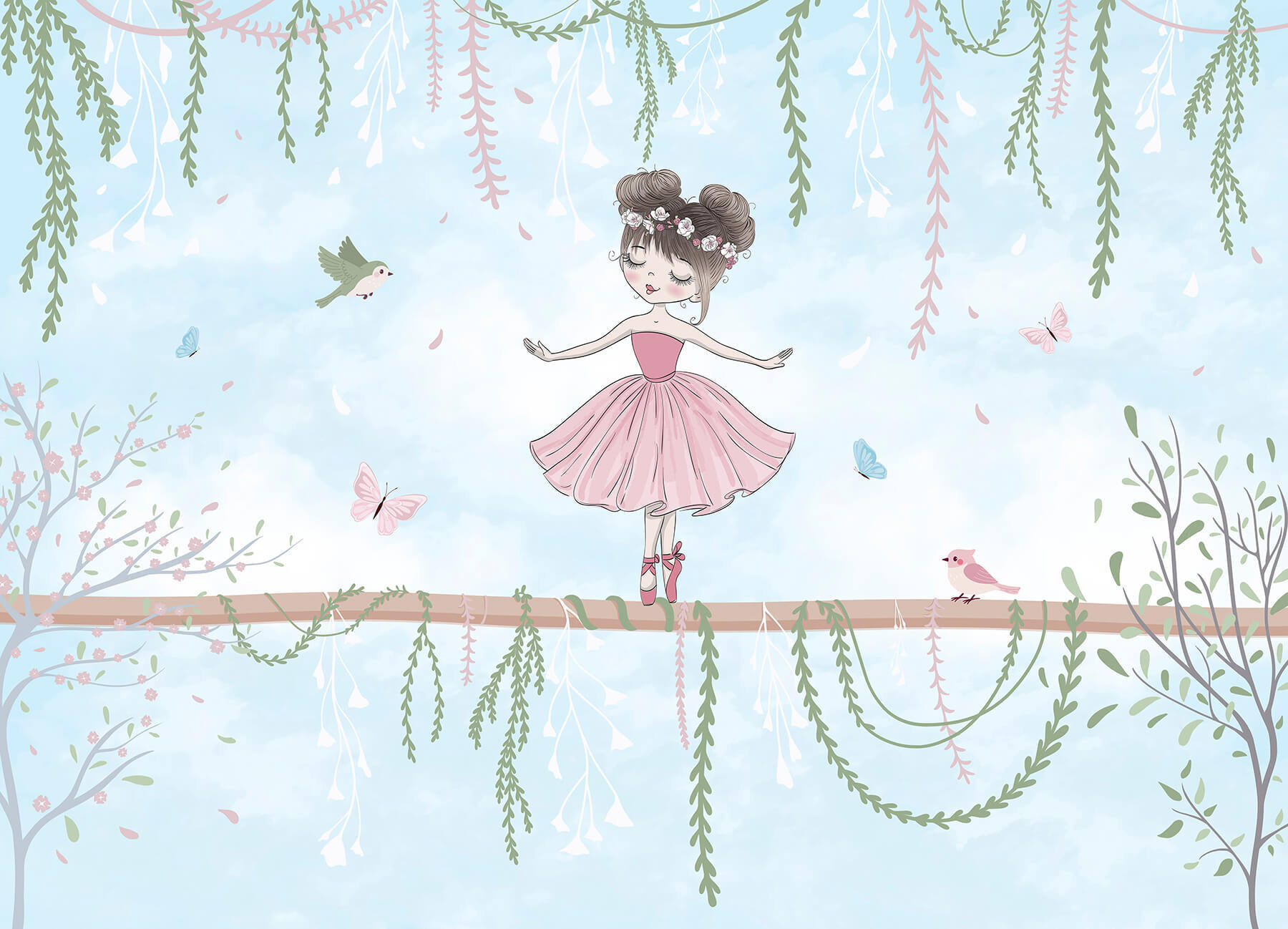 Vstúpte do rozprávkového sveta s touto očarujúcou nástennou maľbou, na ktorej je zobrazená očarujúca dievčina v ružových šatách, dokonale vyvážená na konári. Obklopená poletujúcimi motýľmi a hravými vtákmi, je to ako scéna priamo z rozprávky. Predstavte si, ako rozžiari útulný kútik na čítanie alebo rozžiari radosť v detskej izbe. Jemné farby a fantazijné detaily vyvolávajú úsmev a každý pohľad je ako teplé objatie. Predstavte si, ako popíjate čaj, hľadíte na jej eleganciu a necháte sa uniesť príbehmi, ktoré inšpiruje – kto by to nechcel? Táto nástenná maľba nie je len dekoráciou, je to magický únik!