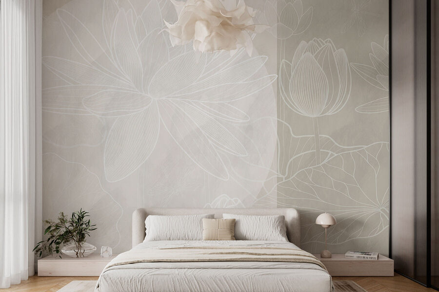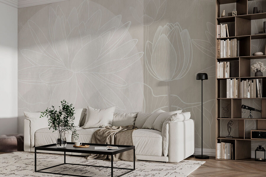 Premeňte akúkoľvek stenu na pokojnú oázu s touto očarujúcou nástennou maľbou s jemnými bielymi kvetmi na jemne sivom pozadí. Je to ako priniesť si malú záhradu dovnútra, bez otravného hmyzu a nepredvídateľného počasia. Predstavte si útulný kútik na kávu, kde sa stretávajú priatelia a každý obdivuje jemnú eleganciu na stene. Jemný akvarelový efekt dodáva snový nádych, ktorý pozýva k chvíľke oddychu a zamysleniu. Ideálne pre každého, kto túži po kúsku prírody bez nutnosti polievať rastliny alebo pamätať na to, aby sa vyhýbal priamemu slnečnému žiareniu. Táto tapeta nie je len dekoráciou, je to pocit.