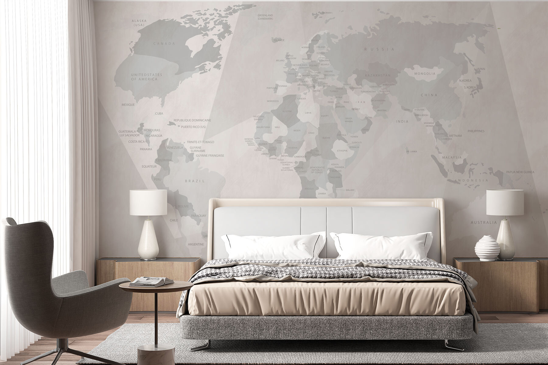 Premeňte obyčajnú stenu na globálne dobrodružstvo s „nástennou maľbou Map of the World“. Táto elegantná, trendy maľba nie je len mapou – je to téma na rozhovor. Predstavte si to: priatelia sa zhromažďujú vo vašej obývačke, pohľady blúdia po kontinentoch a zdieľajú príbehy o cestách blízko aj ďaleko. Tlmené farby vyžarujú pokoj, ale zároveň sú dostatočne výrazné, aby upútali pozornosť každého. Každý pohľad vyvoláva sny o exotických destináciách alebo možno aj netradičnú súťaž v poznávaní hlavných miest. Je to viac ako dekorácia, je to pas do sveta fantázie – bez potreby letenky! Ideálne do tried, kancelárií alebo útulného kútika na čítanie. Nechajte túto tapetu rozprávať príbehy vašich stien.
