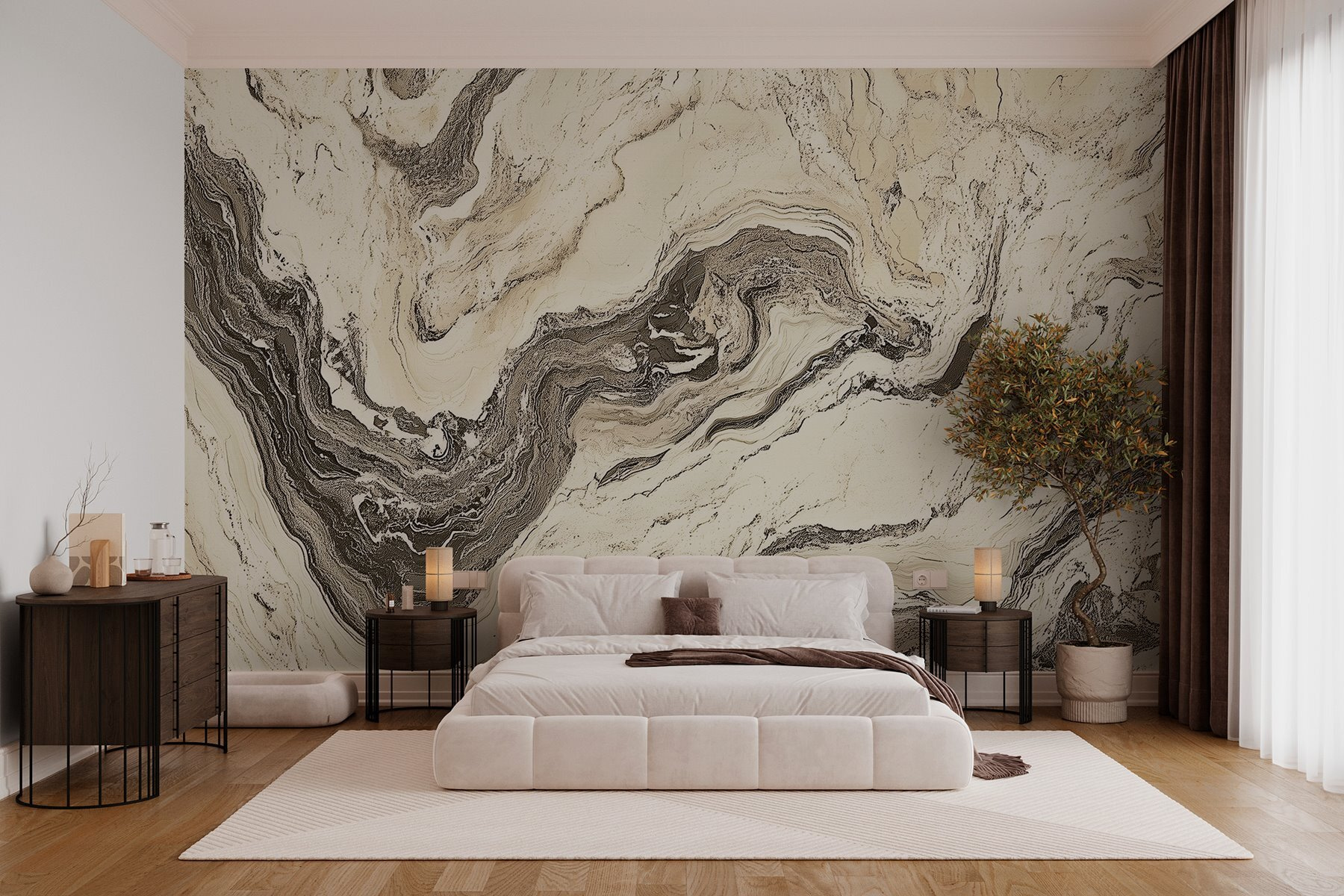 Premeňte svoj priestor na oázu pokoja s touto úžasnou nástennou maľbou „Abstraktné vzory v jemných tónoch“. Predstavte si, že vstúpite do miestnosti, kde vás víria krémovo béžové a jemné sivé farby obklopujú v útulnom objatí. Je to ako zabaliť sa do svojej obľúbenej deky – lenže je to celá stena! Táto nástenná maľba je ideálna na vytvorenie snového prostredia a vyžaruje pocit pokoja. Či už je to pre tichý kútik na čítanie alebo živý kútik na rozhovory, je to práve to pravé. Navyše, kto potrebuje skutočný mramor, keď môžete mať túto krásu, ktorá sa dá odlepiť a nalepiť bez akýchkoľvek problémov? Je to ako kúzlo pre vaše steny! Pripravte sa teda na pohľad na tieto jemné krivky a nechajte svoju myseľ blúdiť – pretože táto tapeta nie je len dekoráciou, je to malý kúsok pokoja.