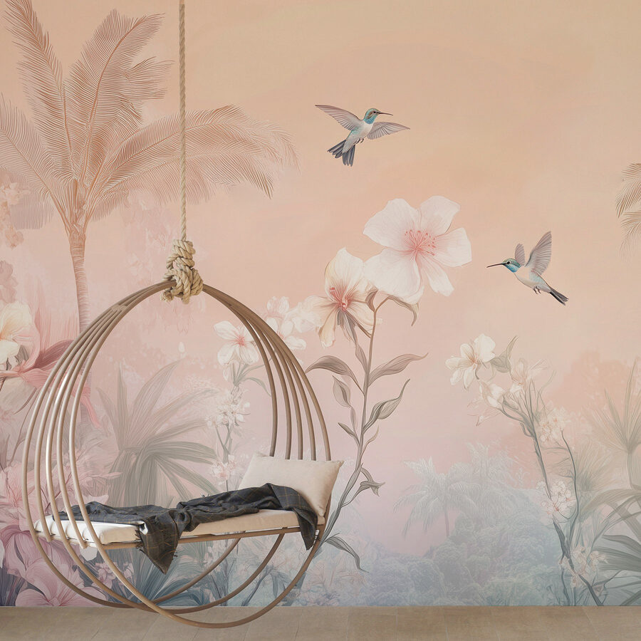 Premeňte svoj priestor s touto očarujúcou nástennou maľbou „Skupina vtákov lietajúcich nad kvetmi“. Predstavte si to: živé vtáky lietajúce nad bujnými kvetmi, ktoré prinášajú kúsok prírody priamo do vášho domova. Nie je to len obyčajná dekorácia na stenu, ale každodenná pripomienka krásy za vašimi štyrmi stenami. Predstavte si, ako popíjate kávu a snívate, zatiaľ čo hľadíte na tento tropický zázrak. Jemné farby vytvárajú príjemnú atmosféru, vďaka čomu je táto tapeta perfektným pozadím pre útulné posedenia alebo tiché chvíle o samote. Je to ako malý kúsok raja – len bez piesku! Kvety šepkajú príbehy o teplom vánku a tie vtáky? Tie by mohli inšpirovať spontánnu tanečnú párty. Ponorte sa do tohto kvetinového raja!
