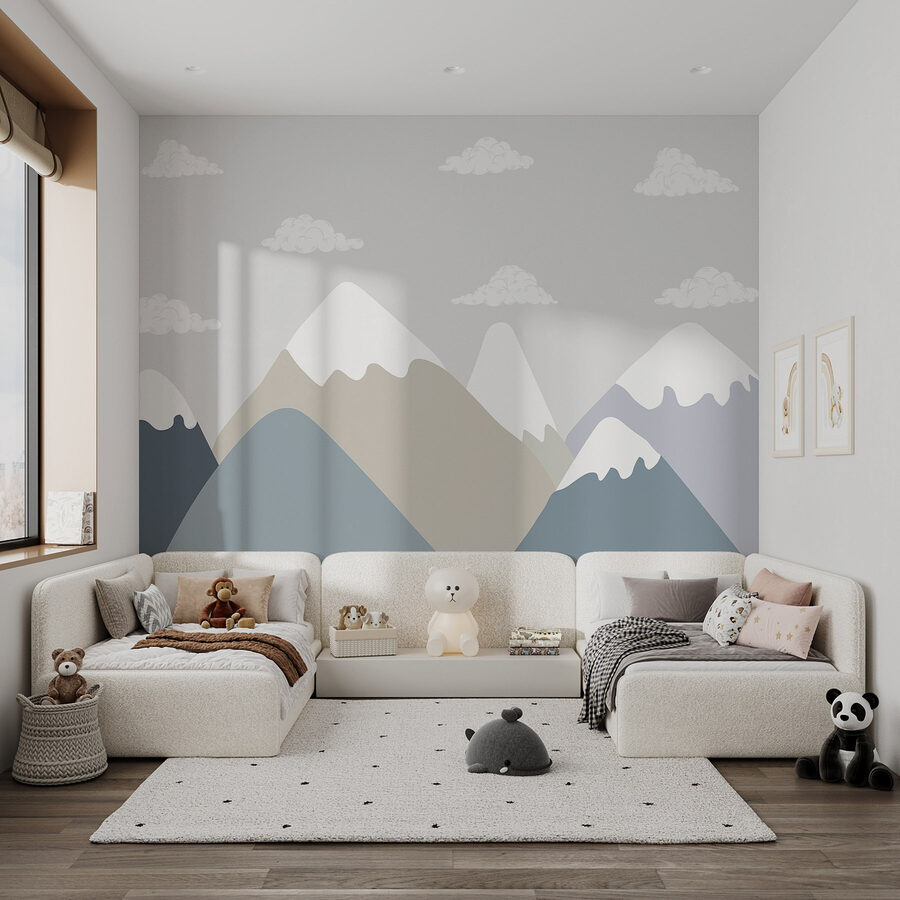 Premeňte svoj priestor pomocou tejto nádhernej nástennej maľby s pokojnými horskými masívmi a nadýchanými plávajúcimi oblakmi. Predstavte si, že vstúpite do miestnosti, ktorá je ako závan čerstvého vzduchu – chladný únik z každodennej rutiny. Jemné odtiene modrej a béžovej farby vyzývajú k pokoju, takže je ideálny pre útulný čitateľský kútik alebo pokojnú spálňu. Len si predstavte, ako sa schúlite s dobrou knihou a stratíte sa v kráse prírody bez toho, aby ste museli opustiť domov. Je to ako mať svoj vlastný kúsok prírody bez hmyzu. Je čas nechať tieto steny prehovoriť!