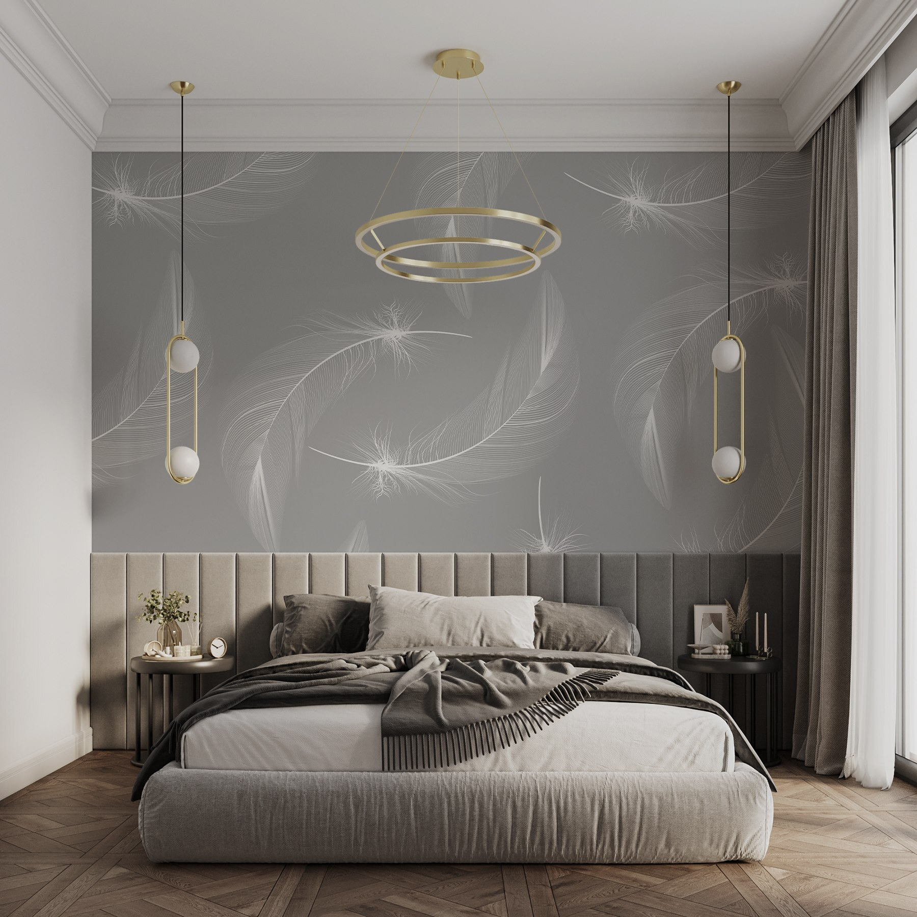 Premeňte akýkoľvek priestor na pokojnú svätyňu s týmito nástennými maľbami s jemnými bielymi pierkami tancujúcimi na jemnom sivom pozadí. Je to ako jemný vánok v interiéri, ktorý šepká elegantný pokoj. Predstavte si, že vstúpite do miestnosti, ktorá sa okamžite zdá byť ľahšia, kde vás každý pohľad prenesie do zasneného úniku. Tieto pierka sú ideálne do útulného čitateľského kútika alebo tichej spálne, pretože dokážu zjemniť atmosféru. Pozývajú k snívaniu a navodzujú pokoj, takže je ťažké sa aspoň trochu neusmievať. Kto by sa necítil povznesený pri takomto očarujúcom pohľade?