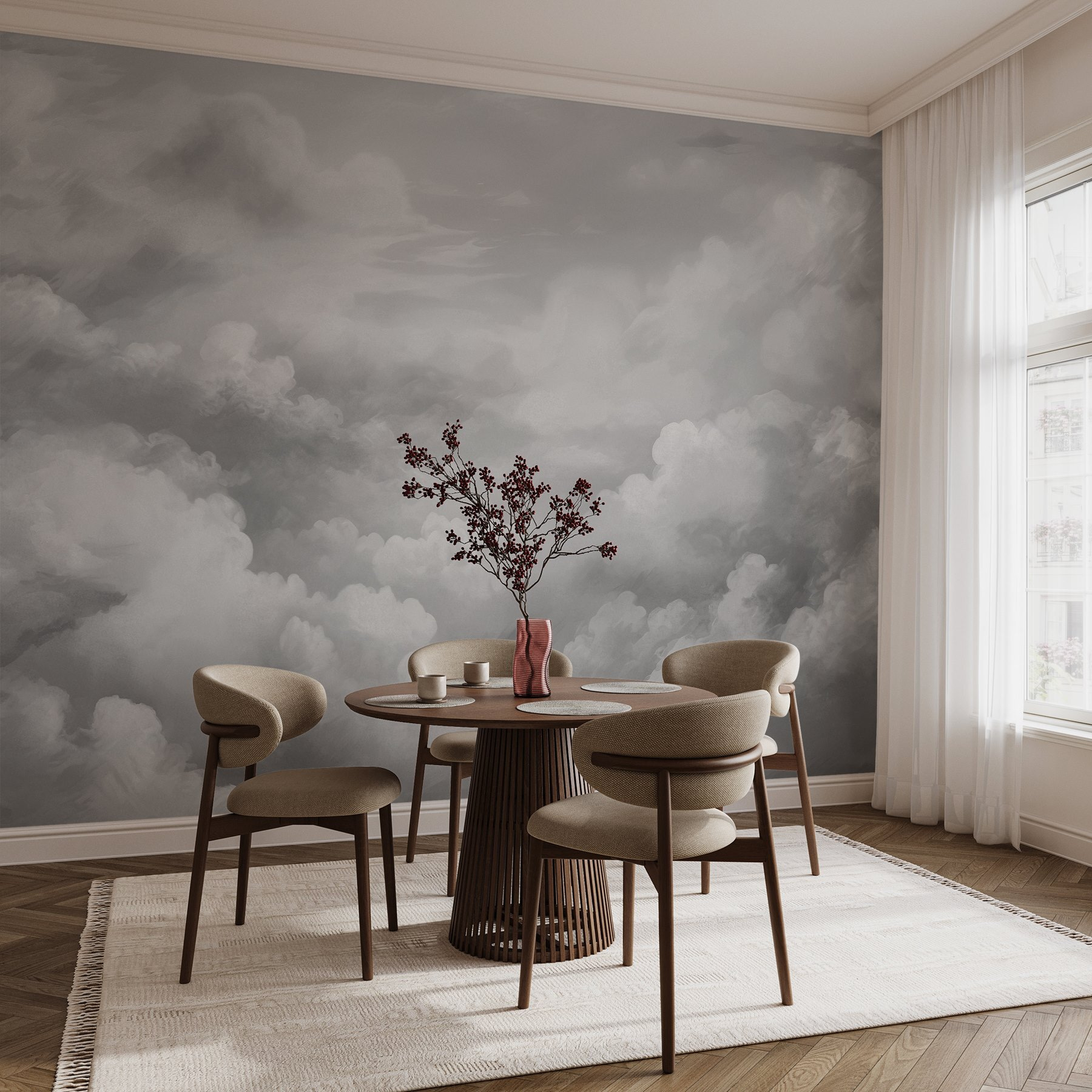Premeňte svoj priestor na vzdušné útočisko s touto ohromujúcou fototapetou „Greyscale Shot of Clouds“. Predstavte si, že vstúpite do miestnosti, kde máte pocit, ako keby ste plávali medzi oblakmi, zahalení do jemnej prikrývky pokoja. Vytvára pokojné pozadie, ktoré je ideálne pre príjemné chvíle s knihou alebo šálkou kávy – možno pri rozjímaní o živote alebo len pri obdivovaní toho, ako ste sa konečne rozhodli pre tú izbovú rastlinu!