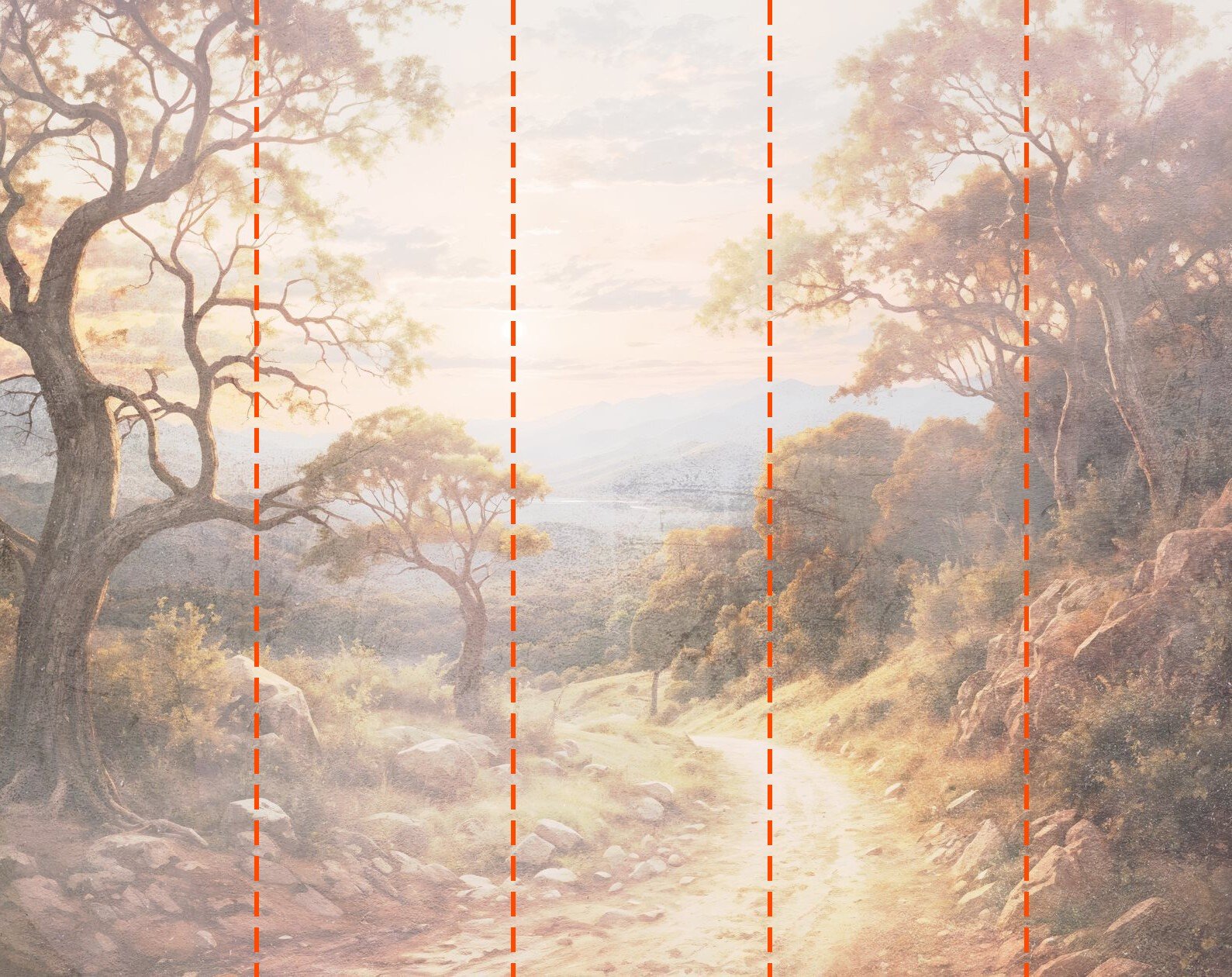 Tapety budú pripravené podľa rozmerov uvedených v procese objednávania. Plátno bude rozdelené na vhodné časti, z ktorých každá bude široká až 50 cm.