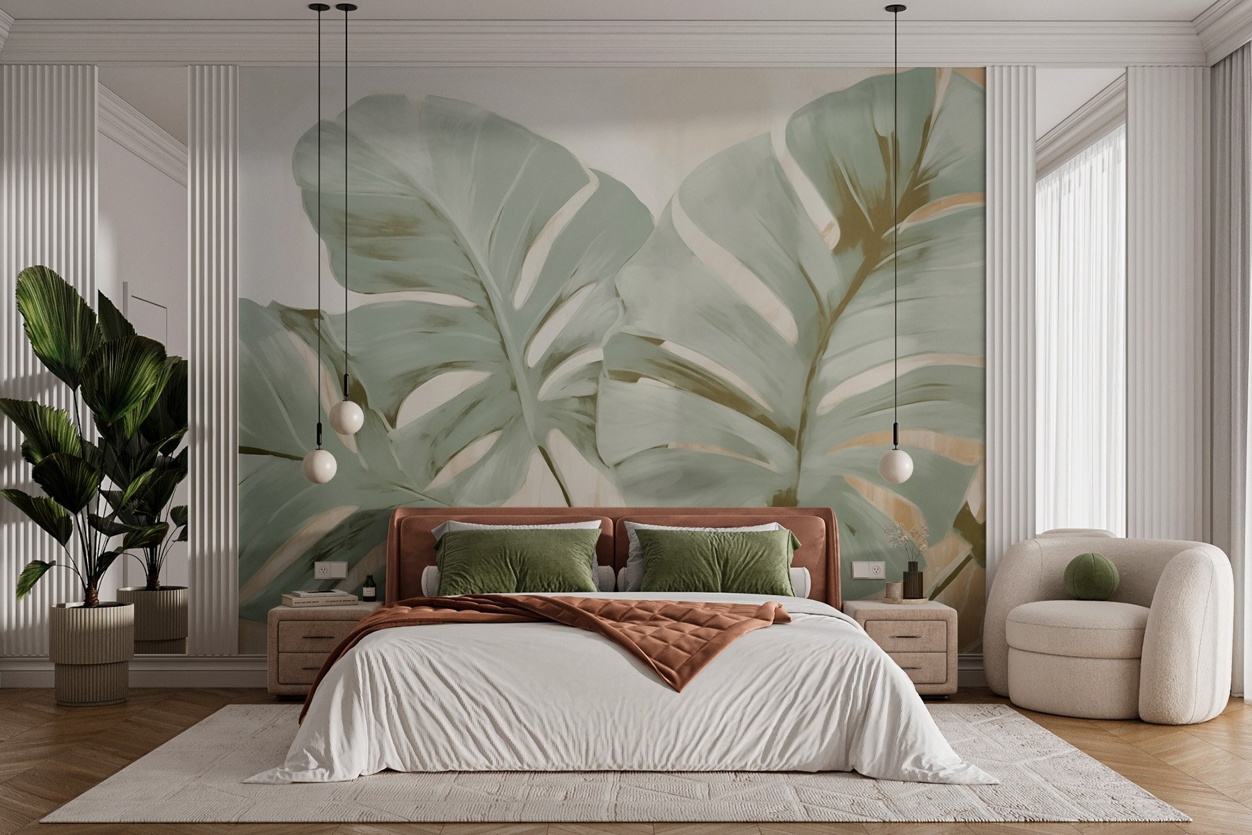 Premeňte akýkoľvek priestor s touto ohromujúcou nástennou maľbou s elegantnými listami, ktoré akoby tancovali po stene. Predstavte si, že vstúpite do svojej izby a máte pocit, ako keby ste práve vstúpili do tropickej oázy. Jemné zelené farby a teplé pozadie navodzujú pocit pokoja – ideálne na relax po dlhom dni. Je to ako mať kúsok prírody priamo doma, bez otravného hmyzu! Navyše, či už je to vaša obývačka alebo kancelária, táto tapeta dodá práve tú správnu atmosféru – na zelení je niečo nepopierateľne svieže a povznášajúce. Vaši priatelia si možno dokonca pomyslia, že ste si urobili malú dovolenku!