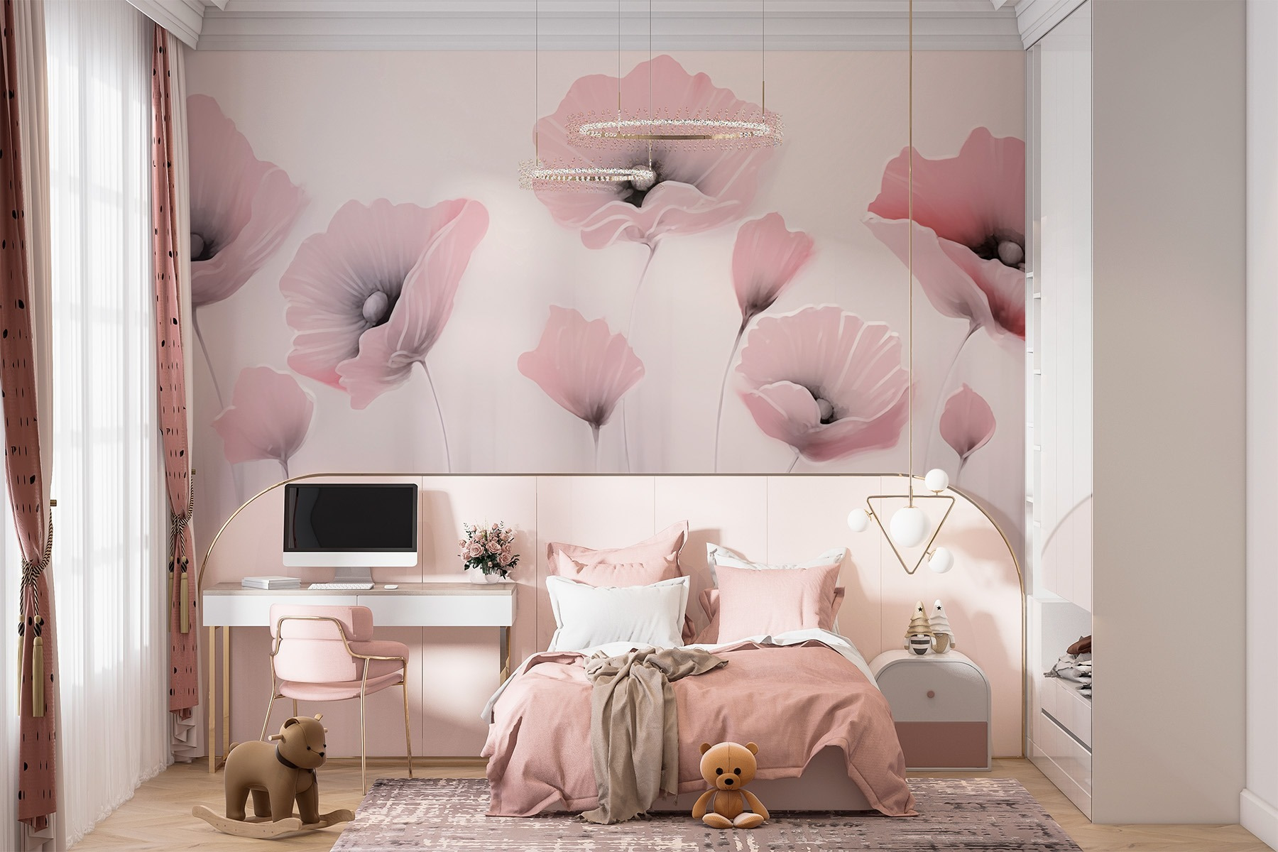 Premeňte svoj priestor s touto nádhernou nástennou maľbou s jemnými akvarelovými kvetmi, ktoré okamžite rozžiaria každú miestnosť! Predstavte si, že sa prebudíte do tejto jemnej ružovo-sivej kvetinovej záplavy – je to ako mať záhradu vo vnútri bez potreby polievania. Prídu vás navštíviť priatelia? Pravdepodobne sa budú čudovať, ako to, že majú to šťastie sedieť v miestnosti, ktorá vyzerá ako umelecká galéria. Navyše upokojujúce farby vytvárajú perfektnú atmosféru na relaxáciu alebo kreativitu. Je to krásna pripomienka, že krása môže rozkvitnúť priamo u vás doma, bez toho, aby ste museli mať zelené ruky. Kto by povedal, že jednoduchá tapeta môže vytvoriť takú veselú atmosféru?