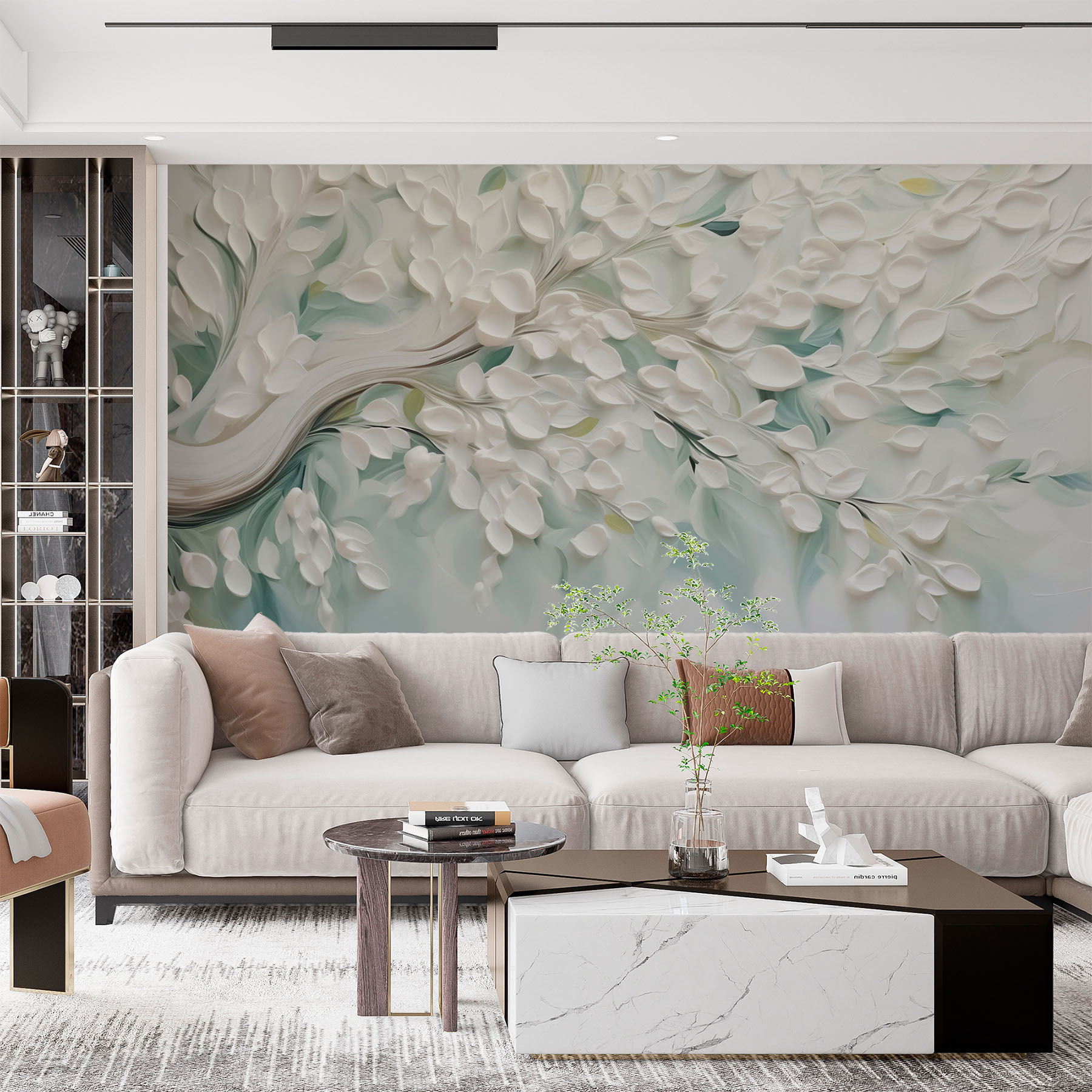 Transform your space with this stunning wall mural featuring a serene white tree adorned with delicate leaves. It’s like a breath of fresh air for your walls! Picture this: you stroll into your living room, and bam—nature’s calming vibes envelop you, making every cup of coffee feel like a mini getaway. The soft colors and lovely textures inspire a sense of peace, so you might find yourself pausing to soak it all in. Perfect for cozy corners or as a dramatic statement piece, this mural brings a touch of elegance and a whisper of nature’s beauty right into your home. Who knew a wall could make you feel so good?