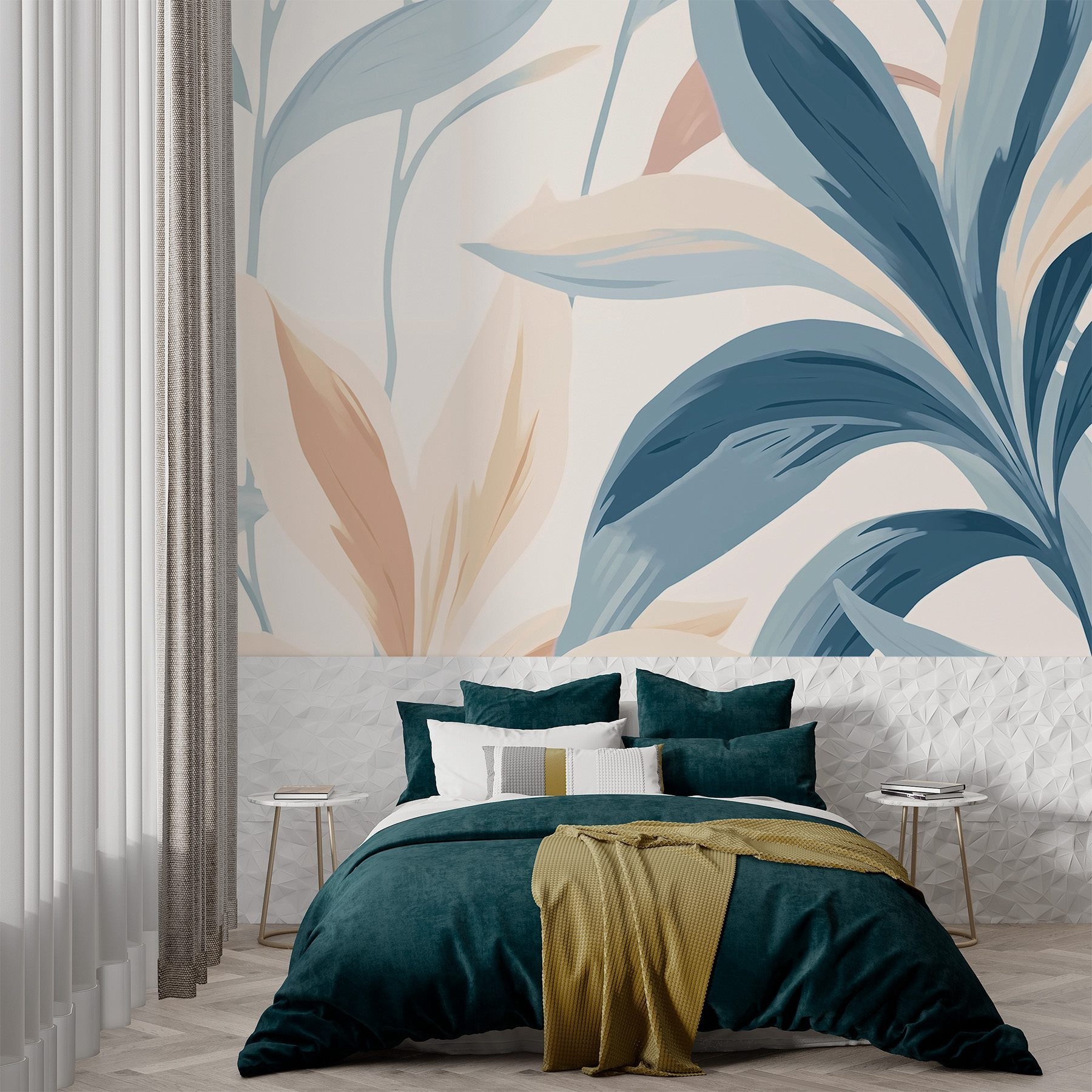 Chcete vniesť do interiéru kúsok prírody? Táto tapeta s rozprávkovým abstraktným motívom listov je presne to, čo hľadáte. Predstavte si, že vstúpite do miestnosti a privítajú vás jemné odtiene modrej a mäkké zemité tóny. Je to ako otvorená lúka, ale bez otravného hmyzu – čo viac si priať!