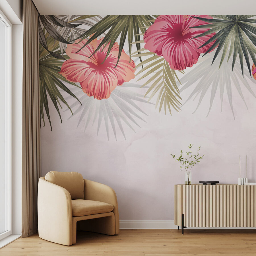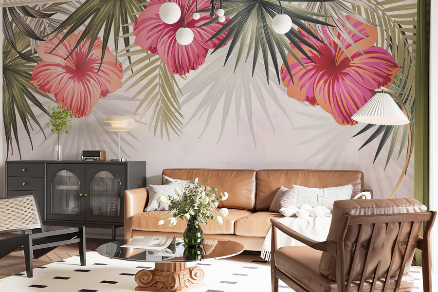 Premeňte akúkoľvek miestnosť na tropický raj s touto ohromujúcou tapetou s ružovými kvetmi, ktoré sa miešajú so sviežimi zelenými listami. Je to ako malý kúsok prírody priamo vo vašej domácnosti, ideálny na oživenie nudného priestoru. Predstavte si, že si ráno vychutnávate kávu obklopení týmito žiarivými kvetmi – možno vás to inšpiruje k sneniu! Farby vynikajú na jemnom pozadí, vďaka čomu je táto tapeta výrazným prvkom, ktorý však neupútava pozornosť. Rastliny síce potrebujú polievať, ale táto krása nevyžaduje žiadnu údržbu! Je ideálna pre tých, ktorí túžia po kúsku prírody, ale nechcú sa starať o rastliny. Tak neváhajte a nechajte svoje steny rozkvitnúť!