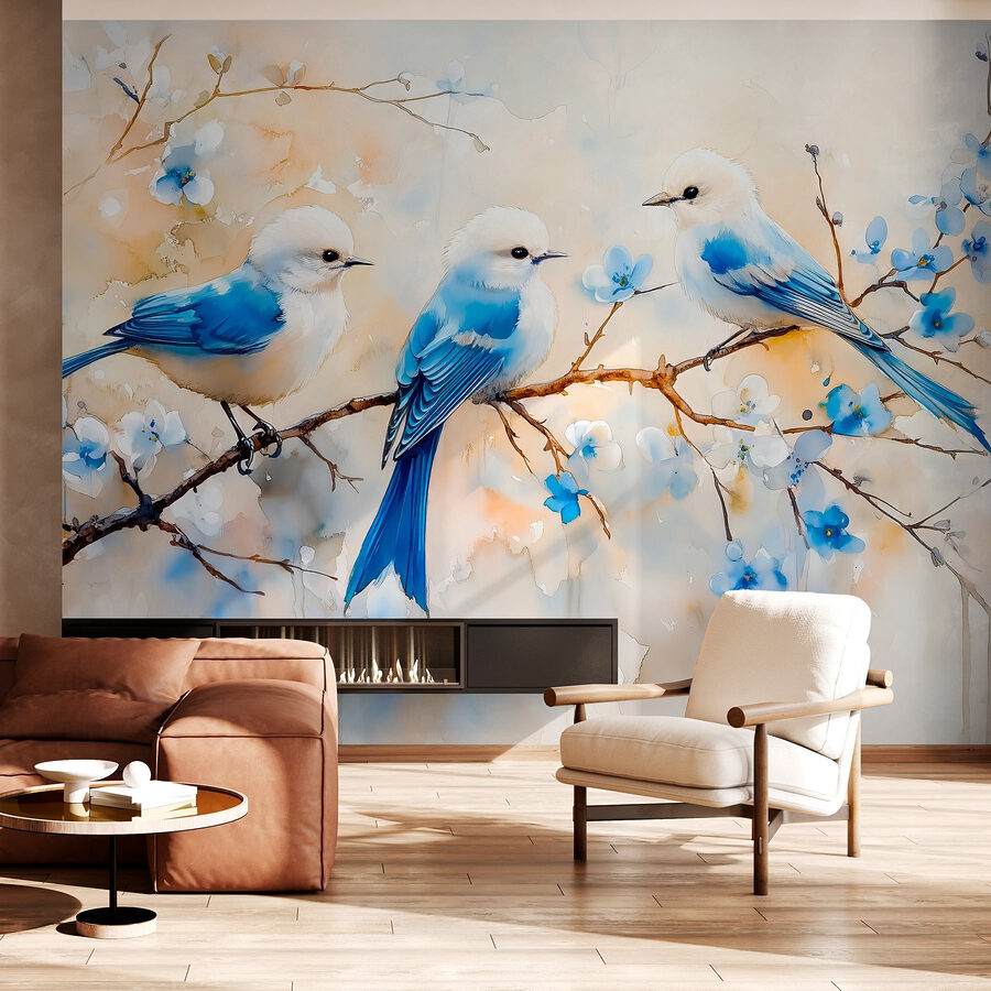 Rozjasnite každú miestnosť touto očarujúcou nástennou maľbou, na ktorej je zobrazené rozkošné trio modrých vtákov posadených na jemne kvitnúcej vetvičke. Je to ako pozvať prírodu do vášho priestoru bez rizika, že vás spev vtákov zobudí za úsvitu! Akvarelový efekt dodáva snovú atmosféru, ktorá je ideálna na vytvorenie pokojnej atmosféry. Predstavte si, ako popíjate čaj alebo kávu v útulnom kútiku, zatiaľ čo vám spievajú títo operení priatelia. Použite ju v detskej izbe, obývacej izbe alebo dokonca v pracovni, aby inšpirovala kreativitu. Modrá farba a jemné kvety navodzujú pocit jari – v každom ročnom období, kedykoľvek. Kto by sa neusmial na tie roztomilé tváričky?