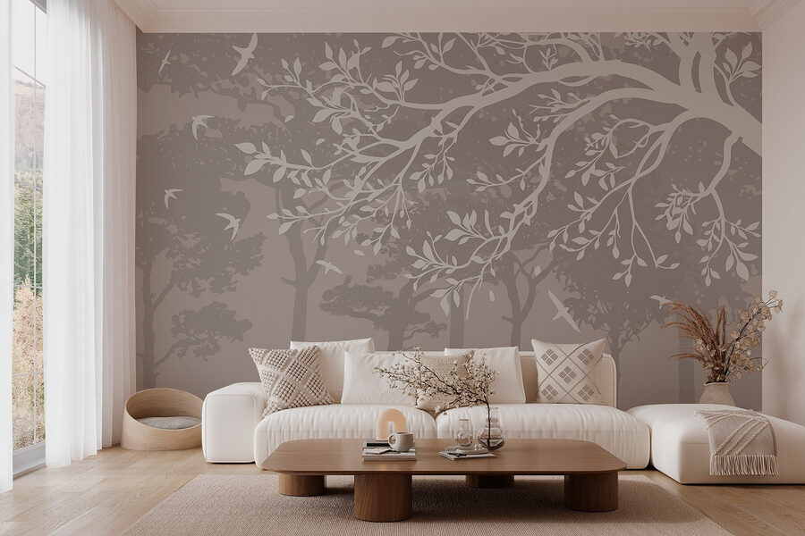 Premeňte svoj priestor s touto úžasnou nástennou maľbou, ktorá zobrazuje pokojnú skupinu stromov s vtákmi lietajúcimi vo vzduchu. Je to ako vstúpiť do tichého lesa – bez hmyzu a vlhkosti. Predstavte si útulnú obývačku alebo upokojujúcu spálňu, kde tento kúsok prináša do interiéru šepot prírody. Elegantné vetvy stromov tancujú po vašej stene a vytvárajú atmosféru pokoja, ktorá vám takmer dá zabudnúť na kopu bielizne v rohu. Či už ide o kreatívny kútik alebo čitateľský kútik, táto nástenná maľba bez námahy zahalí každú miestnosť do tepla a šarmu. Navyše je to okamžitý spúšťač konverzácie – kto by sa nechcel porozprávať o atmosfére mestskej džungle? Trocha prírody ešte nikomu neublížila, však?