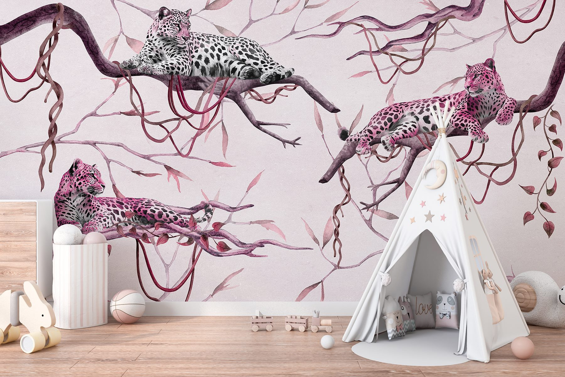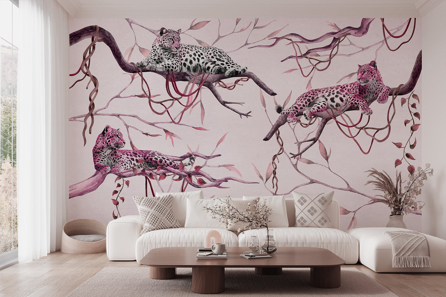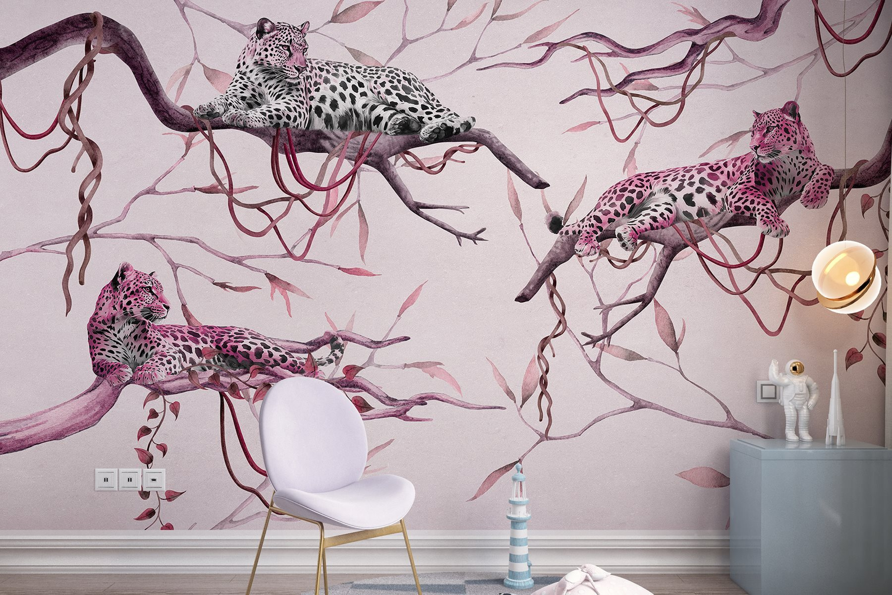 Premeňte svoj priestor na divoké útočisko s touto ohromujúcou nástennou maľbou, na ktorej je zobrazená skupina leopardov oddychujúcich na konári stromu. Tieto škvrnité krásky jasne vedia, ako relaxovať, a prinášajú uvoľnenú atmosféru, ktorá rozžiari každú miestnosť. Predstavte si, že sa každé ráno prebudíte s týmto výhľadom – posaďte sa s kávou a nechajte sa unášať pokojnou atmosférou. Jemné farby a zložité detaily vám dodajú pocit, ako keby ste mali kúsok tropov priamo u seba doma. Ideálne pre milovníkov zvierat alebo kohokoľvek, kto chce jedinečný výrazný kúsok. Tak neváhajte – nechajte tieto leopardy priniesť kúsok divočiny do vášho interiéru!