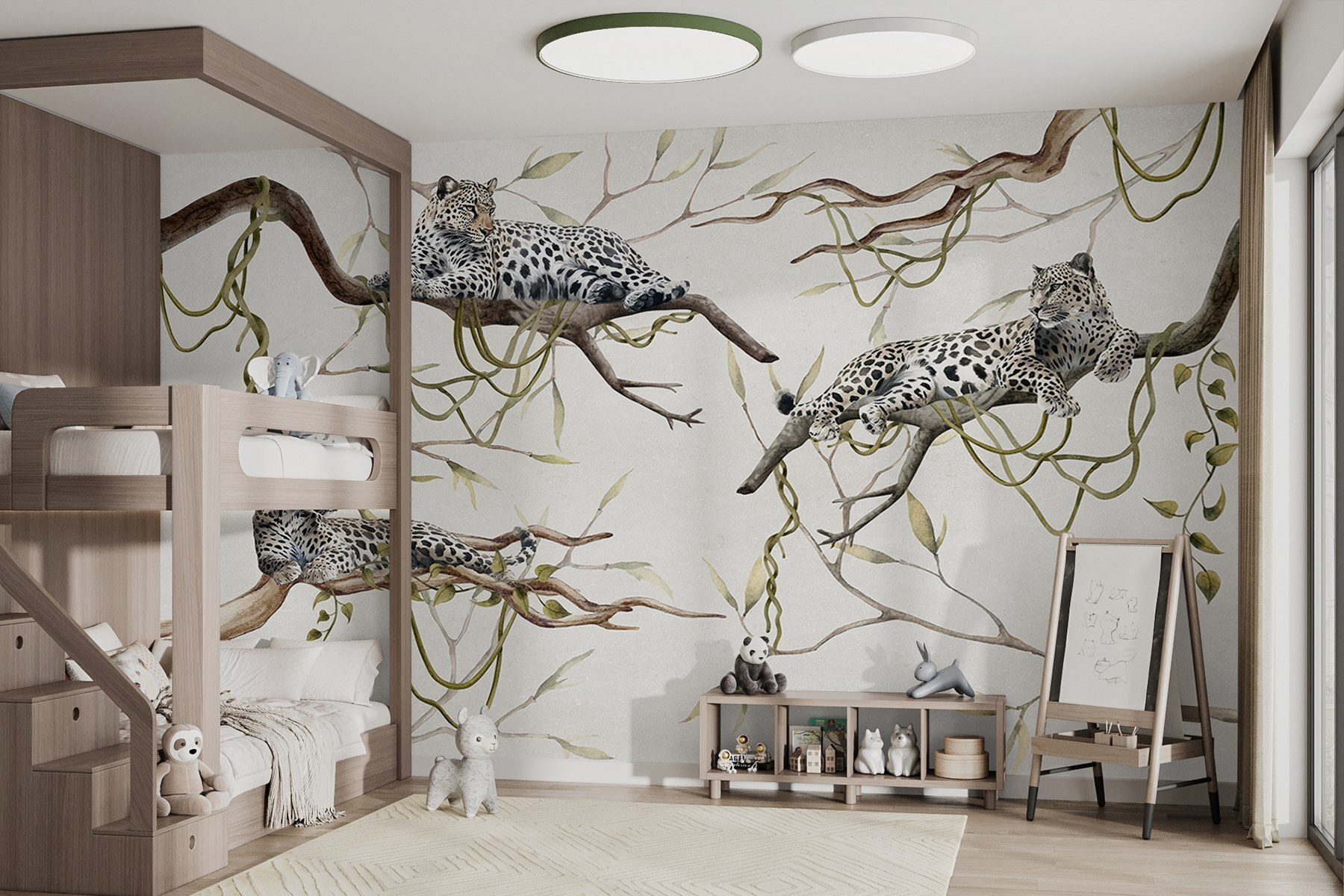 Premeňte svoj priestor na divokú oázu s touto ohromujúcou nástennou maľbou, na ktorej je skupina leopardov ležiacich na konároch. Predstavte si, že vstúpite do miestnosti a pocítite, ako vás obklopuje esencia prírody – tie nenútené vzory škvŕn a elegantné pózy jednoducho upútajú pozornosť. Ideálne pre miesto, ktoré potrebuje trochu oživiť, alebo možno vyvolať závisť na vašom najbližšom stretnutí knižného klubu. Je to ako mať kúsok džungle doma, bez komárov. A kto by sa nechcel prebudiť vedľa takých majestátnych tvorov? Je to všetko o tej harmonickej atmosfére, však?