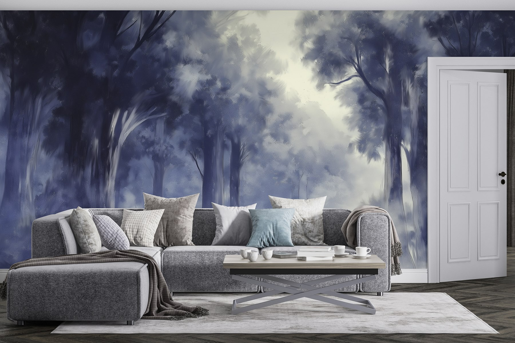 Premeňte akúkoľvek miestnosť na pokojné útočisko s touto nástennou maľbou „Foggy Forest“ (Hmlistý les). Predstavte si, že vstúpite do rozprávkového lesa, kde hmla jemne obklopuje vysoké stromy a vytvára útulné objatie pre váš priestor. Je ideálna pre kútik, kde popíjate rannú kávu alebo si oddýchnete s knihou. Ukludňujúce modré tóny vyvolávajú pokoj, vďaka čomu sa po dlhom dni ľahko uvoľníte. Priatelia vojdú dnu, zhlboka sa nadýchnu a povedia: „Wow, cítim sa ako v rozprávke!“ Kto by nechcel trochu mágie vo svojom domove? Navyše je to skvelá pripomienka, že príroda môže byť na dosah ruky – aj keď počasie vonku hovorí niečo iné.