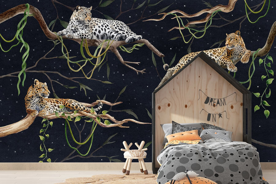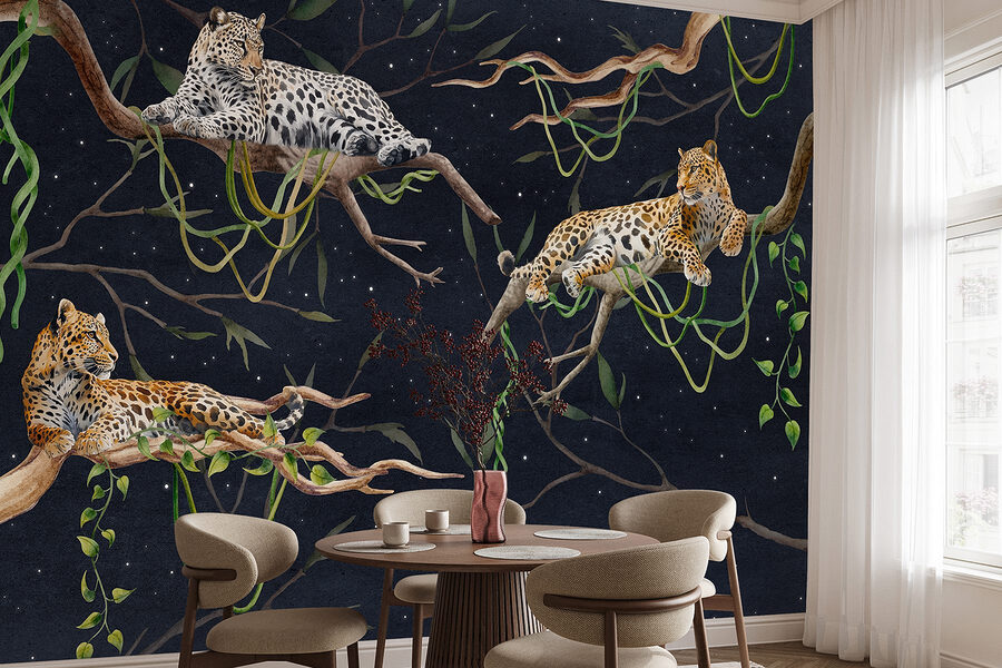 Premeňte svoje steny na divokú oázu s touto ohromujúcou nástennou maľbou leopardov, ktoré sa elegantne vyvaľujú na konároch. Je to ako pozvať kúsok džungle priamo do vašej obývačky – bez vlhkosti a otravných komárov! Predstavte si, ako popíjate rannú kávu, zatiaľ čo vám robia spoločnosť, vyzerajú tak nenútene a bez námahy cool. Bohaté farby a zložité detaily sú pastvou pre oči a sú ideálne na dodanie elegancie akémukoľvek priestoru. Či už ste milovníkom prírody alebo len niekto, kto ocení jedinečné umenie, teplo a šarm tejto nástenné maľby môže podnietiť konverzácie a priniesť útulnú atmosféru. Navyše, kto by nechcel mať trojicu leopardov vo svojej blízkosti? Mohli by sa stať novým stredobodom vášho domova!