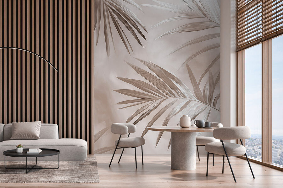 Predstavte si, že pri každom vstupe do svojho priestoru vstúpite do útulného tropického útočiska. Táto fototapeta s pôvabnými listami na jemnom pozadí prinesie túto atmosféru priamo k vám domov. Predstavte si jemný šepot prírody s nádychom pokoja. Je ideálna na snívanie o dovolenke zaliatej slnkom, zatiaľ čo popíjate rannú kávu. Priatelia sa možno zastavia a spýtajú sa: “Práve ste sa vrátili z dovolenky?” Vy sa len usmejete s vedomím, že vaša malá oáza je hneď za vami. Či už ide o obývačku, spálňu, alebo dokonca tú časť, s ktorou neviete, čo robiť, táto nástenná maľba dodá pohodu a osvieženie. Navyše je to podnet na konverzáciu – pretože kto by sa nechcel rozprávať o palmových listoch?