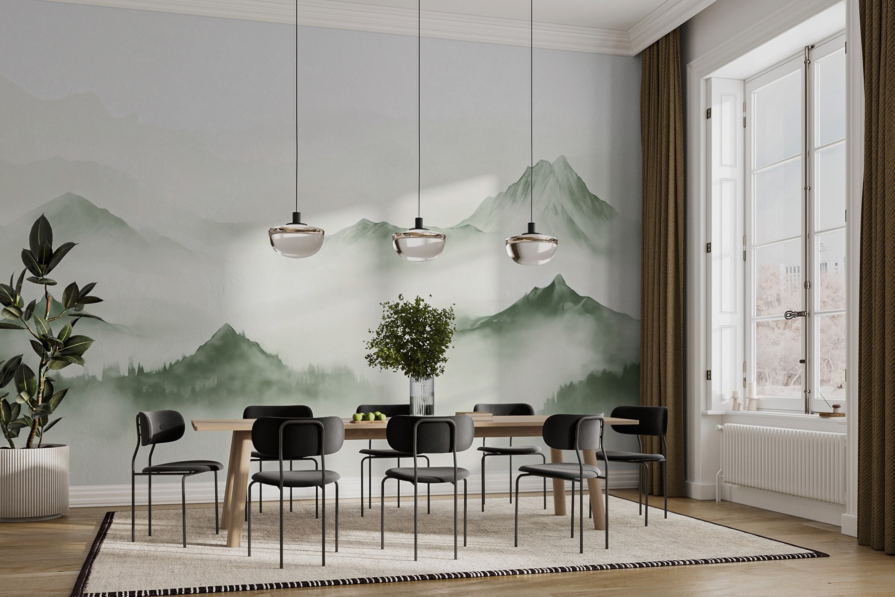 Premeňte svoje steny na pokojné útočisko s nástennou maľbou „Foggy Mountain Landscape“ (Hmlistá horská krajina). Predstavte si, že vstúpite do miestnosti a máte pocit, ako keby ste vstúpili do pokojného, hmlistého horského rána. Jemné zelené farby a zamatové obrysy vrcholkov vytvárajú pocit pokoja, ideálny na oddych po dlhom dni. Je to takmer ako keby hory šepkali tajomstvá a pozývali vás, aby ste sa zhlboka nadýchli a relaxovali. Priatelia si možno dokonca pomyslia, že máte skrytú chatu v lese! Táto tapeta nie je len dekoráciou; dodáva každodennému životu nádech prírodného pokoja a prináša nádhernú prírodu priamo do vášho útulného priestoru. Je to snové, upokojujúce – kto by to nechcel? Či už v obývacej izbe alebo v domácej pracovni, určite vyvolá konverzáciu a obdiv.