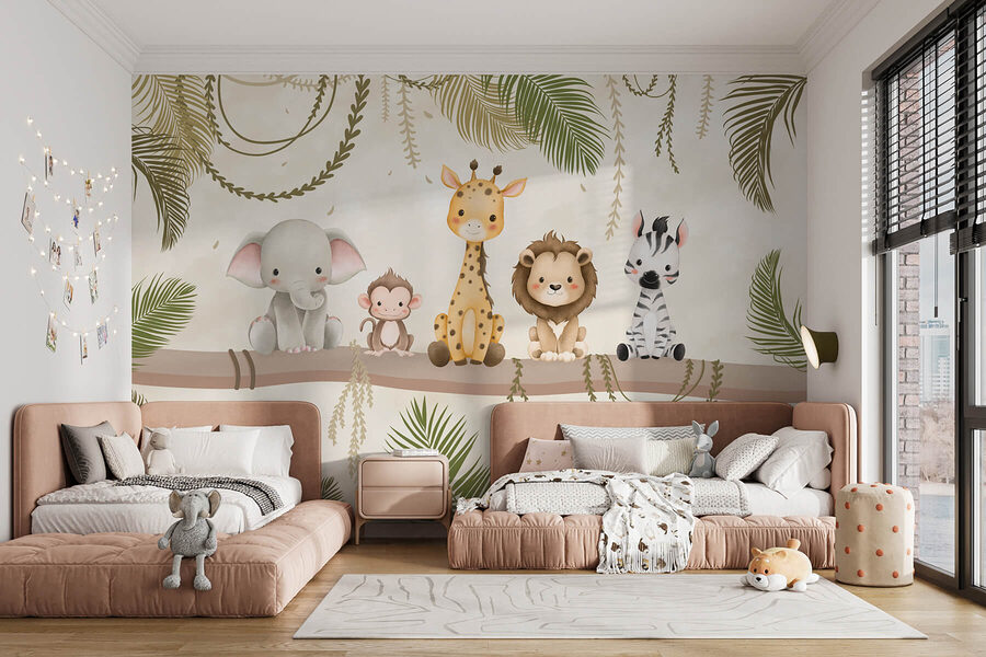 Premeňte svoj priestor na živú džungľu s touto nádhernou nástennou maľbou s rozkošnou posádkou zvieracích kamarátov sediacich na pevnej vetve. Predstavte si to: drzá opica, nežný slon, pôvabná žirafa, priateľský lev a hravá zebra, všetci pripravení priniesť na vaše steny radosť a teplo. Je to ako mať mini safari priamo doma. Táto nástenná maľba, ktorá je ideálna do detskej izby alebo útulného kútika, vyvoláva úsmev a podnecuje predstavivosť. Kto by nechcel prísť domov k hŕbe priateľských tvárí? Ideálna pre deti všetkých vekových kategórií alebo jednoducho pre každého, kto má veľké srdce pre zvieratá!