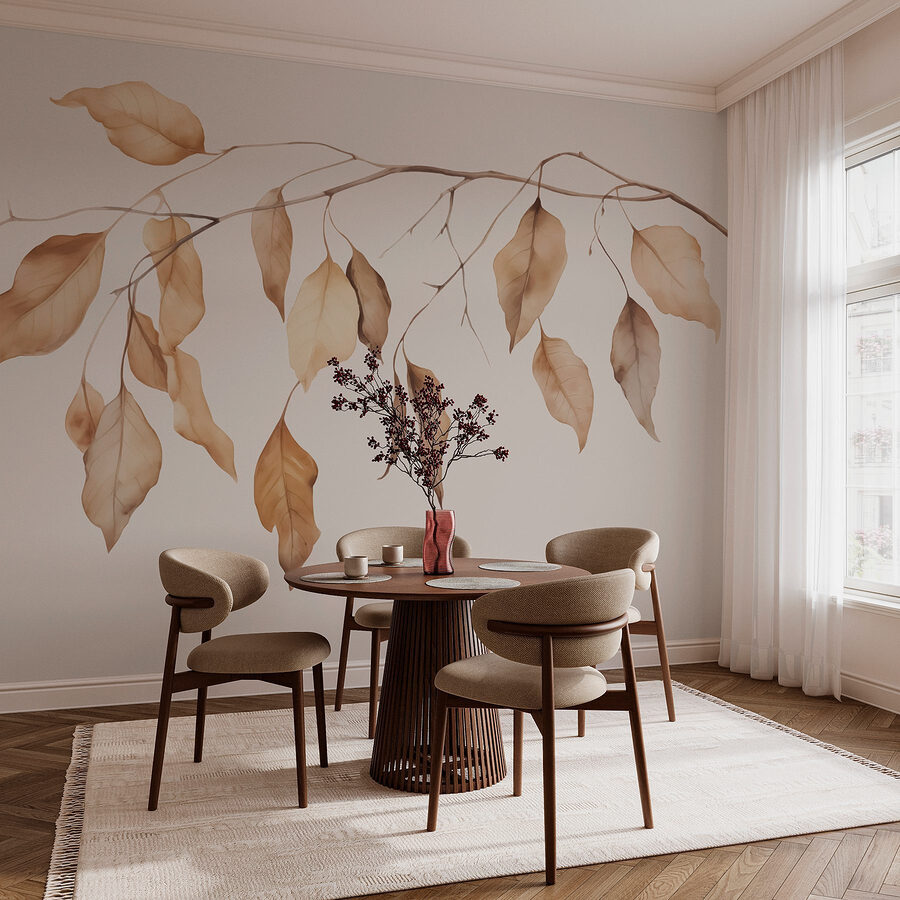 Premeňte prázdnu stenu na pokojné útočisko pomocou tejto nástennej maľby s jemnými vetvičkami zdobenými jemnými hnedými listami. Každý list šepká príbehy o prírode a vytvára útulnú atmosféru, ktorá pozýva teplo do každého priestoru. Predstavte si, ako popíjate kávu v miestnosti ozdobenej touto fototapetou, ktorej upokojujúce odtiene sa nádherne začlenia do vášho interiéru. Pôsobí ako nekonečná jeseň, kde vám každý pohľad na stenu pripomenie, aby ste si oddýchli a nadýchli sa. Tento kúsok je ideálny do obývacích izieb alebo spální a hostia budú premýšľať o vašej tajnej záhrade, ktorá čaká len na to, aby ju preskúmali. Je to príroda, ale bez zablatených topánok!