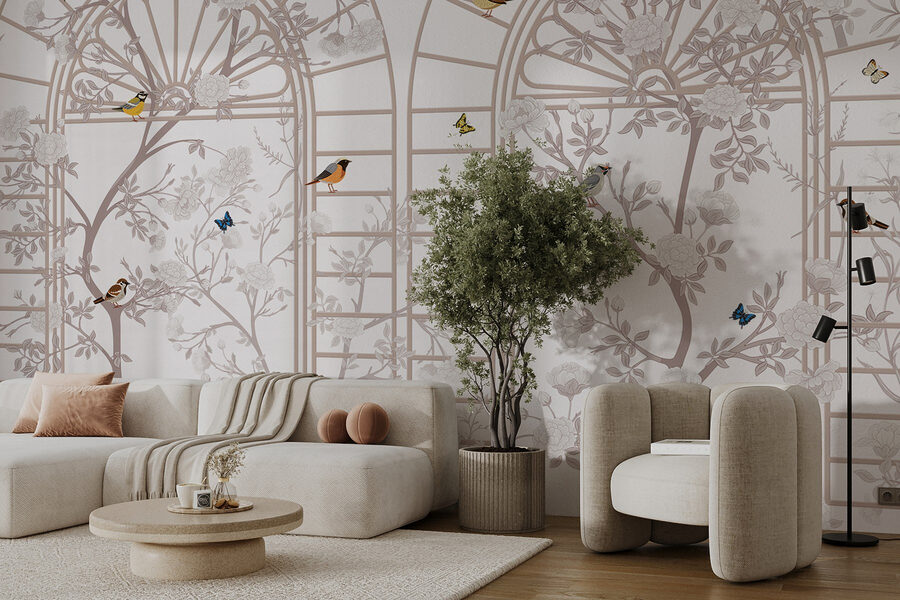 Predstavte si, ako popíjate čaj, očarení poletujúcimi motýľmi a melódiami malých spevavých vtákov. Je to ako mať okno, ktoré sa otvára do snového jarného dňa, aj uprostred zimy. Táto tapeta je ideálna do pokojnej kancelárie alebo do čitateľského kútika vašej milovanej osoby a dodáva osobnosť bez toho, aby kričala o pozornosť. Je jemná, ale príjemná; presne to, čo potrebujete na zlepšenie nálady.