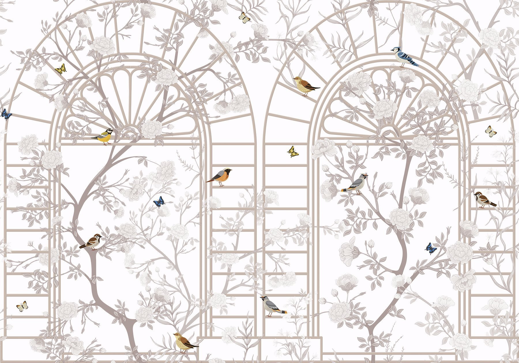 Predstavte si, ako popíjate čaj, očarení poletujúcimi motýľmi a melódiami malých spevavých vtákov. Je to ako mať okno, ktoré sa otvára do snového jarného dňa, aj uprostred zimy. Táto tapeta je ideálna do pokojnej kancelárie alebo do čitateľského kútika vašej milovanej osoby a dodáva osobnosť bez toho, aby kričala o pozornosť. Je jemná, ale príjemná; presne to, čo potrebujete na zlepšenie nálady.