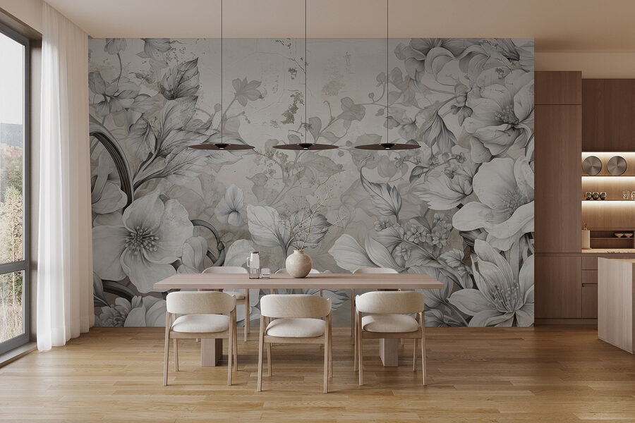 Premeňte akúkoľvek miestnosť pomocou podmanivej krásy „Jemných kvetov v jemných odtieňoch šedej“. Táto tapeta vyžaruje eleganciu a zahalí váš priestor do jemného objatia akvarelových kvetov. Predstavte si, že sa prebudíte a tieto jemné okvetné lístky zdobia vaše steny, vyvolávajú pokojnú atmosféru a inšpirujú kreativitu. Každý ťah štetcom rozpráva príbeh, vďaka čomu je táto tapeta ideálna do útulného kútika na čítanie alebo štýlovej obývačky. Žiadne výrazné farby – len jemné odtiene, ktoré vdychujú život vášmu interiéru. Je to ako priniesť si pokojnú záhradu dovnútra, bez otravného peľu. Nečudujte sa, ak sa priatelia zastavia len preto, aby obdivovali túto mágiu!