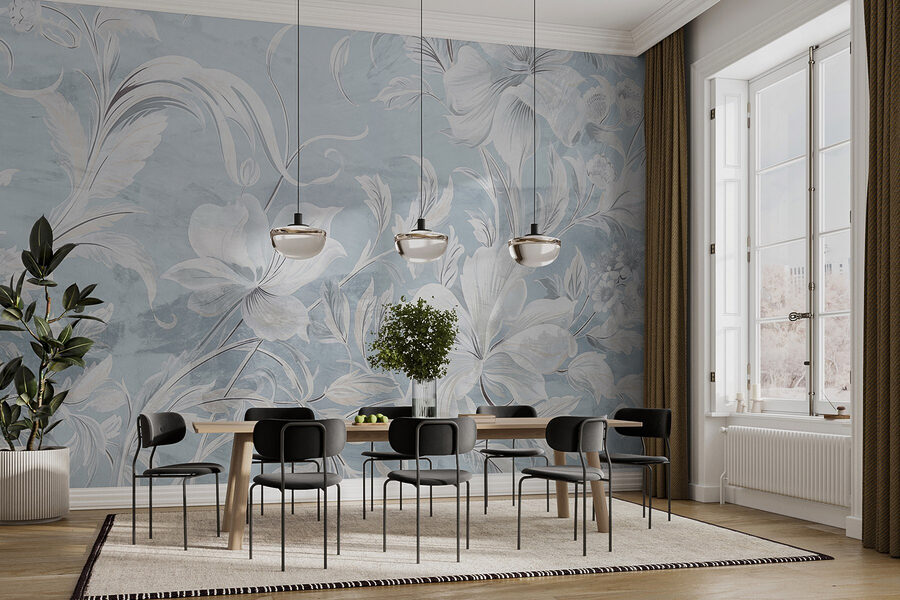 Premeňte svoj priestor s touto úžasnou „nástennou maľbou s bielym a sivým kvetinovým vzorom“. Predstavte si, že vstúpite do miestnosti, kde jemné kvety nežne tancujú po stenách a vytvárajú vzdušnú, pokojnú atmosféru. Je to ako mať záhradu bez alergií! Tieto jemné kvety na modrom pozadí sa krásne hodia do akéhokoľvek prostredia – sú ideálne na rozjasnenie nudného kúta alebo na dodanie šarmu vášmu útulnému čitateľskému kútiku. Predstavte si niekoho, kto sa zvinie s knihou, obklopený týmto pokojným kvetinovým objatím. Je to pripomienka, že príroda môže priniesť pokoj a radosť priamo do interiéru. A kto by nemiloval náznak elegancie? Akvarelový štýl tejto tapety prináša jedinečný štýl, ktorý z nej robí témou na rozhovor. Ideálna pre každého milovníka kvetín alebo kohokoľvek, kto potrebuje vo svojom živote trochu extra krásy!