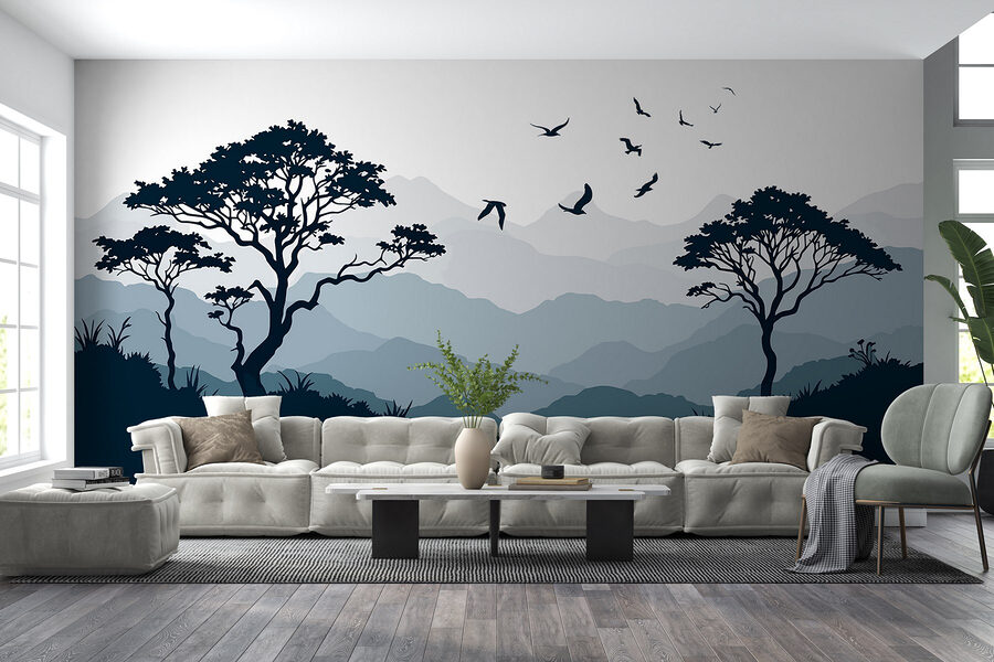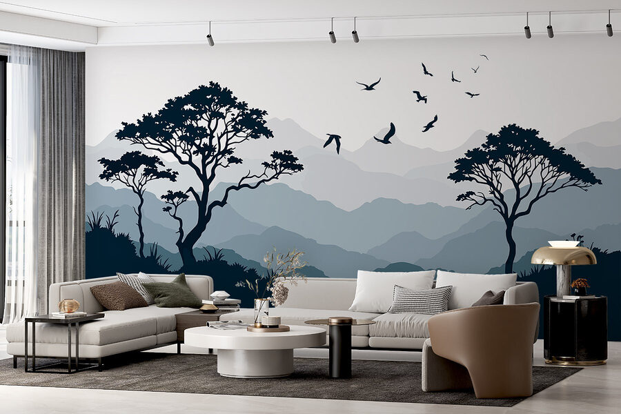 Premeňte svoj priestor pomocou úžasnej nástenné maľby „Vtáky lietajúce nad horským masívom“. Predstavte si túto pokojnú scénu obklopujúcu vaše steny a vytvárajúcu pokojnú atmosféru, o ktorej ste ani nevedeli, že ju potrebujete. Jemné odtiene hôr a stromov vyvolávajú pocit pokoja, takmer ako mini dovolenka bez balenia kufrov! Zakaždým, keď sa na ňu pozriete, zdá sa, že tie vtáky šepkajú slobodu.