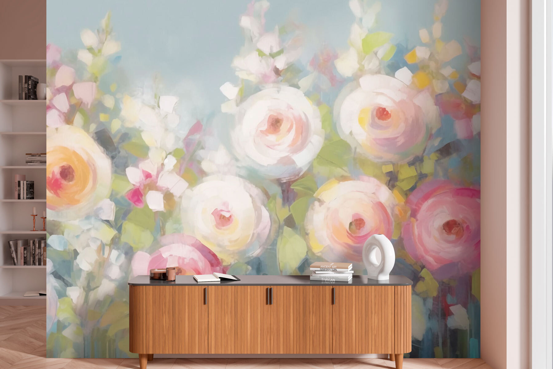 Transform any room into a blooming paradise with this stunning wall mural featuring vibrant flowers against a soft blue backdrop. The cheerful colors and flowing shapes invite a sense of warmth and tranquility, perfect for brightening up a cozy space. Imagine sipping your morning coffee, surrounded by these lovely blooms, as if spring has taken up permanent residence in your home. Whether it’s a living room, bedroom, or a creative nook, this mural brings a touch of nature indoors. It’s like having a garden without the watering can—who wouldn’t appreciate that? Seriously, this mural doesn’t just decorate; it uplifts!