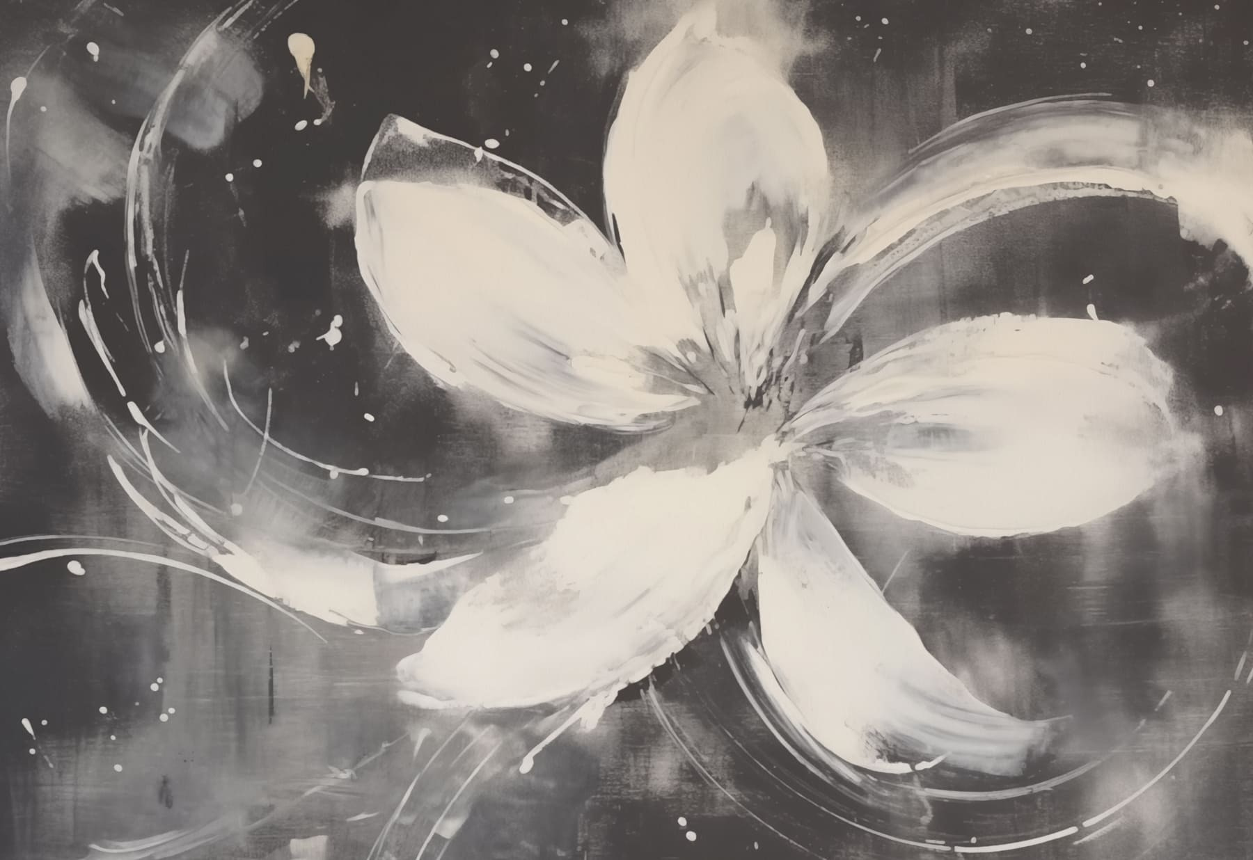 Transform your space with this striking “White Flower on a Black Background” mural. It’s like nature’s pure elegance wrapped in a cozy embrace of watercolor vibes. Imagine stepping into a room where a giant, dreamy flower seems to dance against a backdrop of rich, deep tones. Perched proudly on your wall, it whispers calm and creativity to anyone who glances its way.