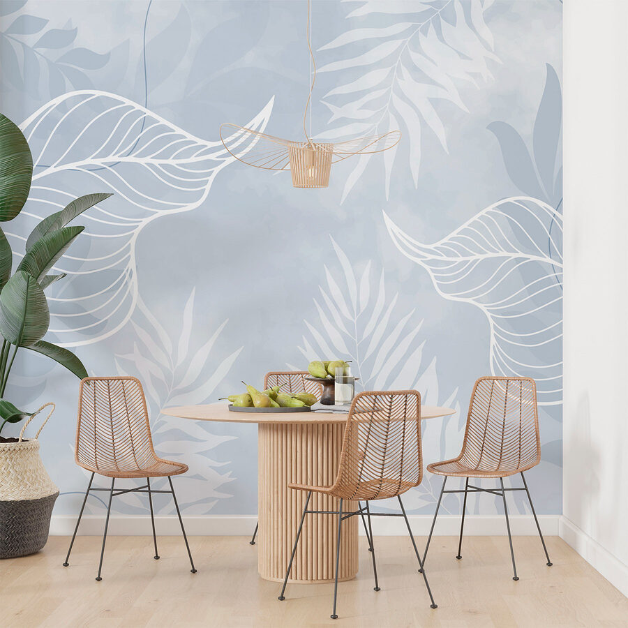 Premeňte svoj priestor na pokojné útočisko pomocou nástennej maľby Biele listy na modrom pozadí. Predstavte si, že pri každom vstupe do miestnosti vstúpite do oázy pokoja – tieto jemné biele listy tancujú na jemnom modrom pozadí a vytvárajú upokojujúcu atmosféru, ktorá pôsobí ako jemný vánok počas teplého dňa. Je to ako šepot prírody rozlievajúci sa po vašich stenách. Táto nástenná maľba je ideálna pre akýkoľvek priestor a nabáda k pokoju, či už v útulnom čitateľskom kútiku, alebo v pokojnej spálni. Kto by sa nechcel schúliť s dobrou knihou obklopený takýmto vzdušným pôvabom? Nie je to len dekorácia; je to malý kúsok radosti, ktorý rozjasní aj tie najchmúrnejšie dni.