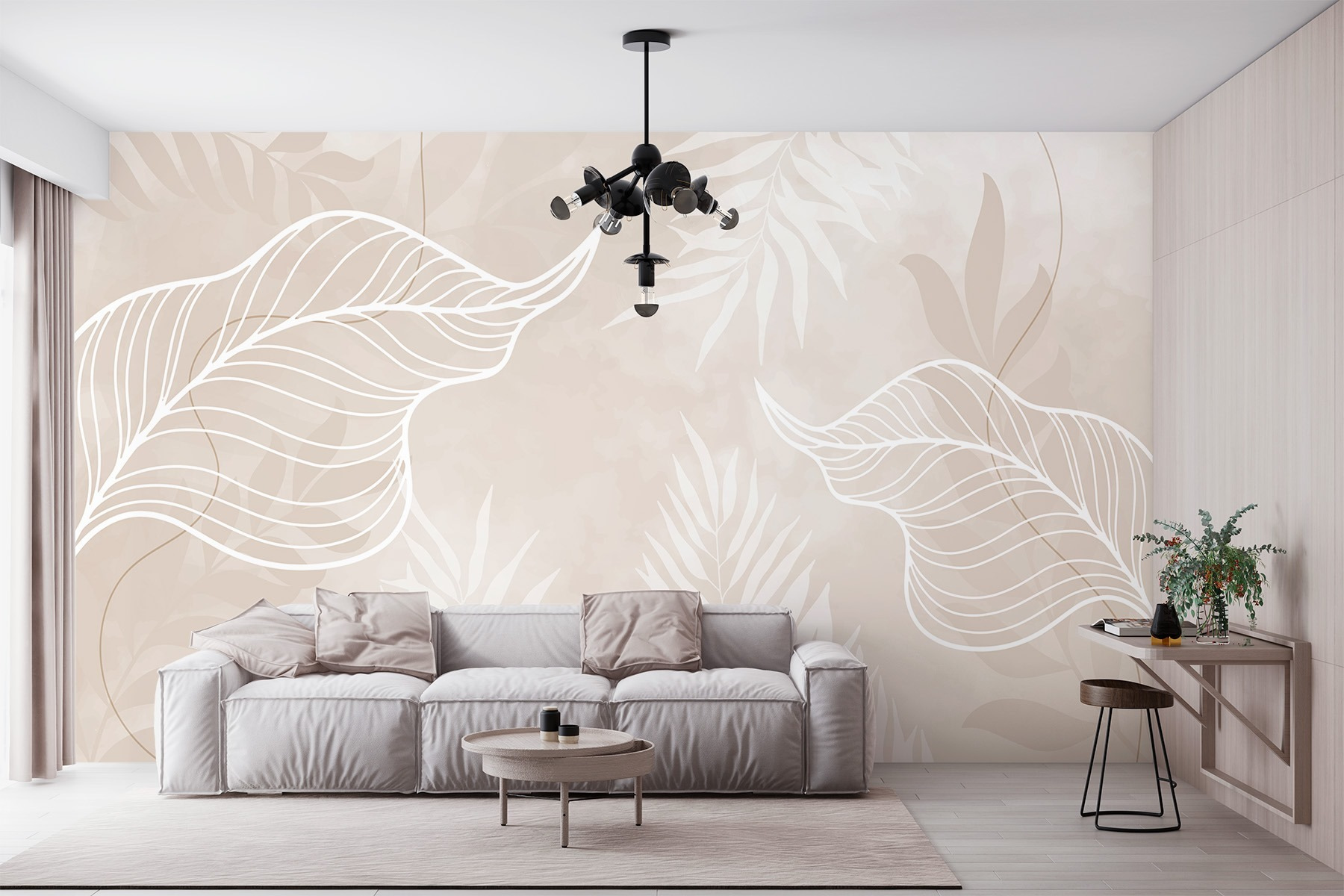 S touto nástennou maľbou bielych listov na jemnom béžovom pozadí je premena miestnosti na pokojné útočisko jednoduchšia. Je to ako priniesť do interiéru závan čerstvého vzduchu bez starostí so zalievaním rastlín. Predstavte si, ako popíjate rannú kávu obklopení týmito jemnými lístkami, ktoré sa jemne kolíšu vo vánku. Tak ľahko sa spájajú a dodávajú nádych prírodného pokoja, ktorý je ideálny na uvoľnenie po dlhom dni. Navyše je to druh dekorácie, ktorá vyvoláva konverzáciu – hostia budú premýšľať, či máte niekde ukrytú tajnú záhradu. Prijmite pokojné vibrácie!