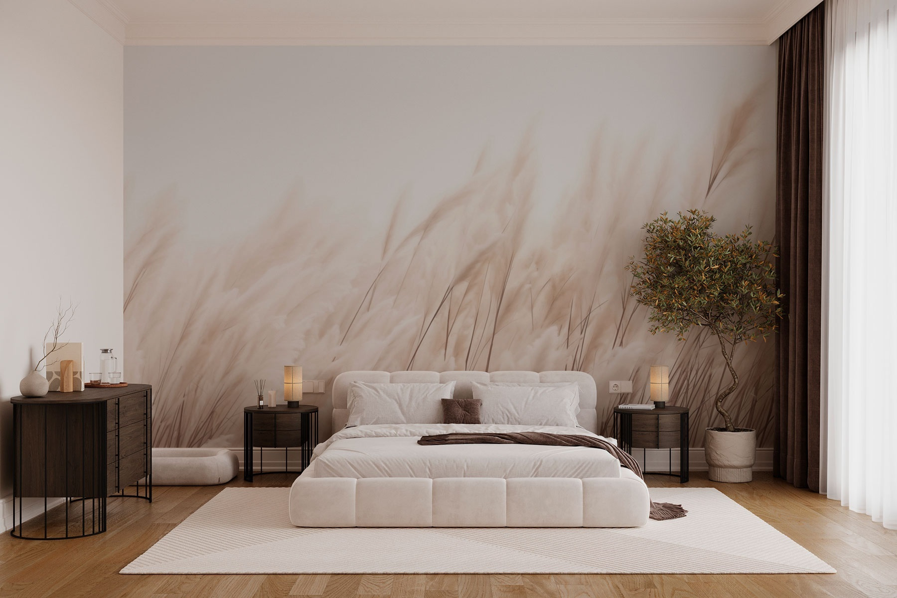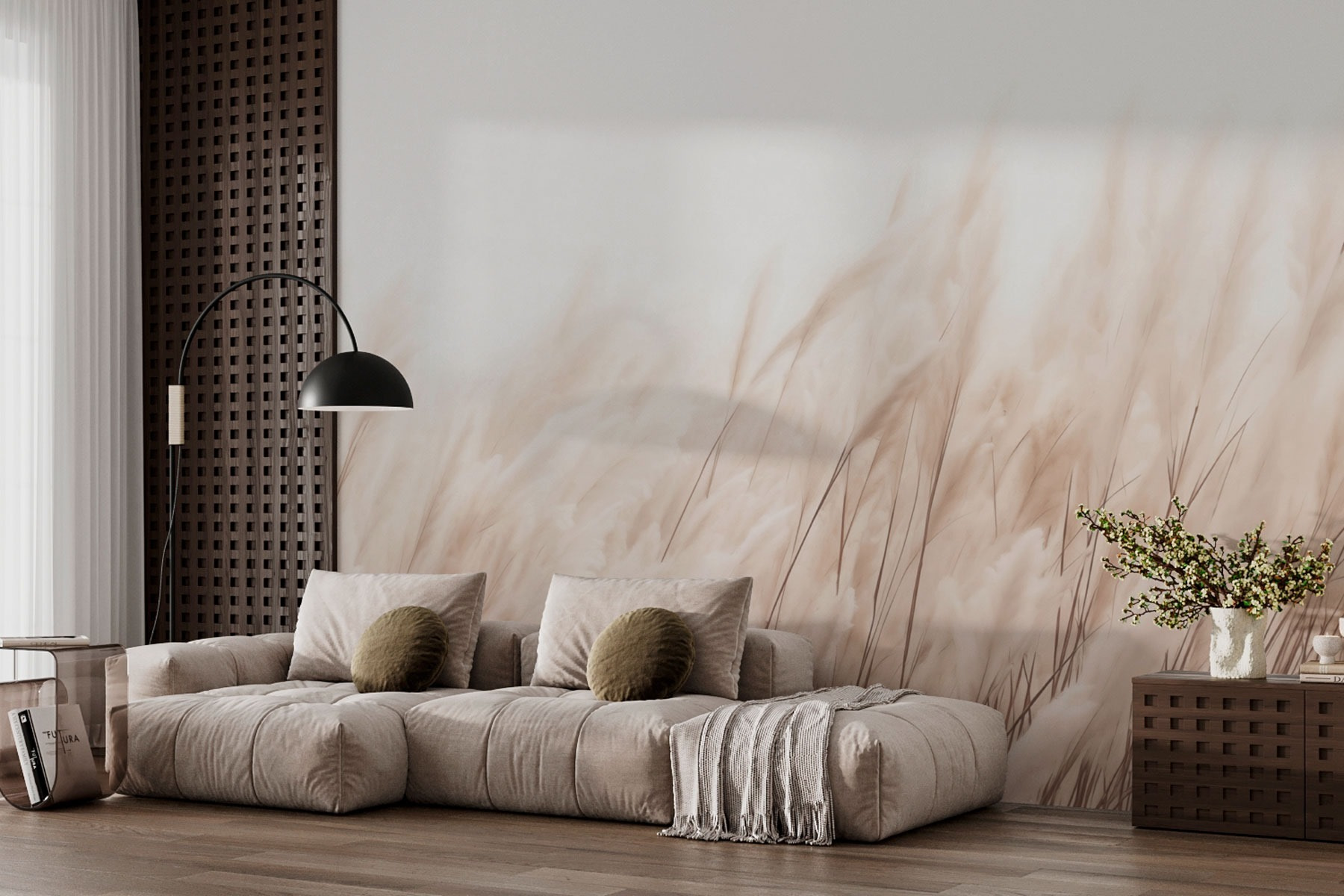 Pomocou nástennej maľby “Upokojujúca tráva v jemnom svetle” premeníte každú miestnosť na pokojné útočisko. Predstavte si, že ste obklopení jemne sa kývajúcou trávou, ktorú bozkáva to najjemnejšie svetlo – ideálne na snívanie alebo len na oddych po hektickom dni. Či už v útulnom kútiku na čítanie alebo na rozjasnenie chodby, táto nástenná maľba dodá prírode nádych pokoja. Predstavte si útulné rána pri popíjaní kávy, zatiaľ čo priestor objímajú jemné tóny. Je to ako preniesť kúsok vonkajšieho prostredia dovnútra, bez chrobákov a nepredvídateľného počasia. Ideálne pre tých, ktorí túžia po pokojnej atmosfére!
