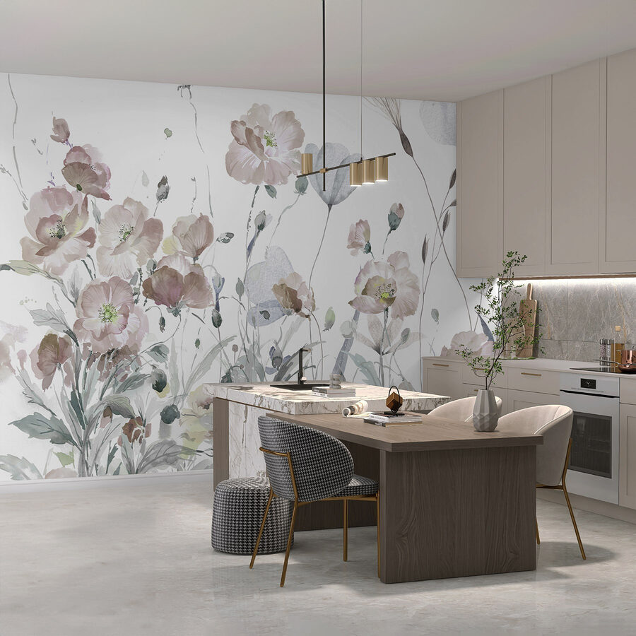 Premeňte svoj priestor na pokojnú záhradu s touto očarujúcou nástennou maľbou kvetov a listov. Predstavte si to: vojdete do miestnosti a bum – je to ako vstúpiť do akvarelového majstrovského diela. Jemné pastelové farby a delikátne kvety vyžarujú pokojnú atmosféru, ideálnu pre útulný kútik na čítanie alebo pokojnú spálňu. Je to takmer ako keby kvety šepkali sladké ničoty. Kto by to nechcel? Navyše vytvára krásne pozadie pre vaše ranné rituály pri káve alebo nočné rozhovory. Pridajte túto tapetu a nechajte krásu prírody rozžiariť váš deň, každý deň!
