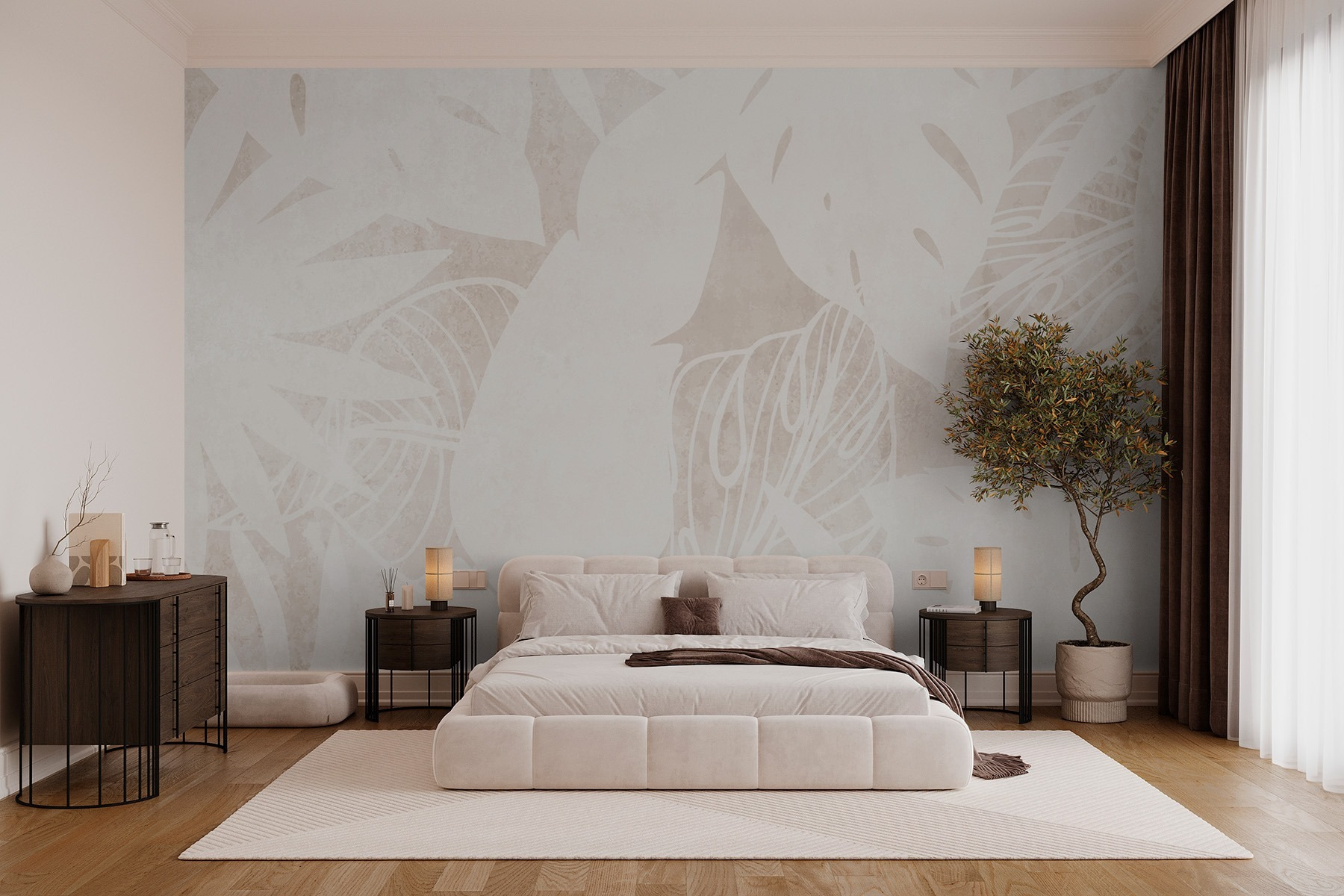 Predstavte si, že vstúpite do miestnosti, ktorá pôsobí ako tropický únik, aj keď je to len útulný kútik vášho domova. Táto tapeta s motívom „bielych listov“ má elegantnú, upokojujúcu atmosféru, ktorá vyžaruje pokoj – ako nedotknutá pláž s jemným bielym pieskom. Jemné motívy listov plávajú na hladkom povrchu a dodávajú priestoru rozmer bez toho, aby preťažovali zmysly. Je ideálna ako pozadie pre čitateľský kútik alebo pre tú nepríjemnú stenu, s ktorou nikdy neviete, čo robiť. Možno sa pristihnete, ako snívate o slnkom zaliatej dovolenke, zatiaľ čo popíjate šálku čaju. Je to ako priniesť kúsok pokojného raja priamo do vášho každodenného života. Kto by to nechcel?