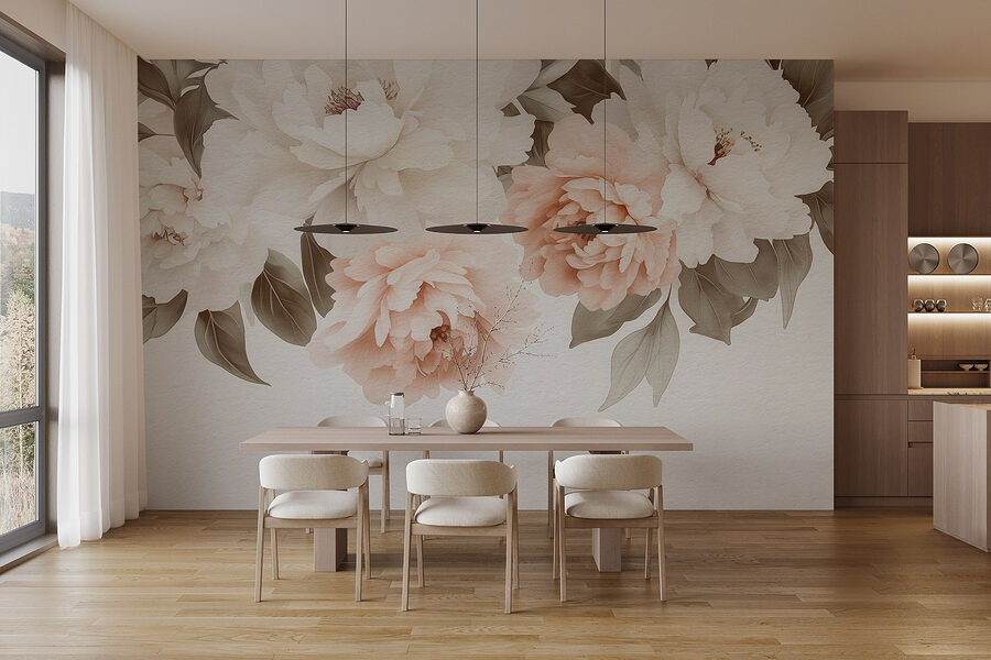 Premeňte akúkoľvek miestnosť na pokojné záhradné útočisko pomocou tejto úžasnej nástennej maľby so zasnenou skupinou kvetov a listov. Predstavte si, že sa každé ráno prebúdzate do jemného ružového svetla pivoniek, ktorých jemné farby šepkajú teplo a pohodu. Táto fototapeta akoby priniesla kúsok prírody do interiéru a dodala mu vrstvy šarmu a nádych romantiky. Perfektne sa hodí do útulných zákutí, čitateľských kútikov alebo aj na prázdnu stenu, ktorá si žiada pozornosť. Nie je to len dekorácia, ale vytvára príjemnú atmosféru, v ktorej si človek môže oddýchnuť, akoby sa uvelebil medzi rozkvitnutými okvetnými lístkami. Kto by sa v takomto krásnom priestore necítil inšpirovaný?