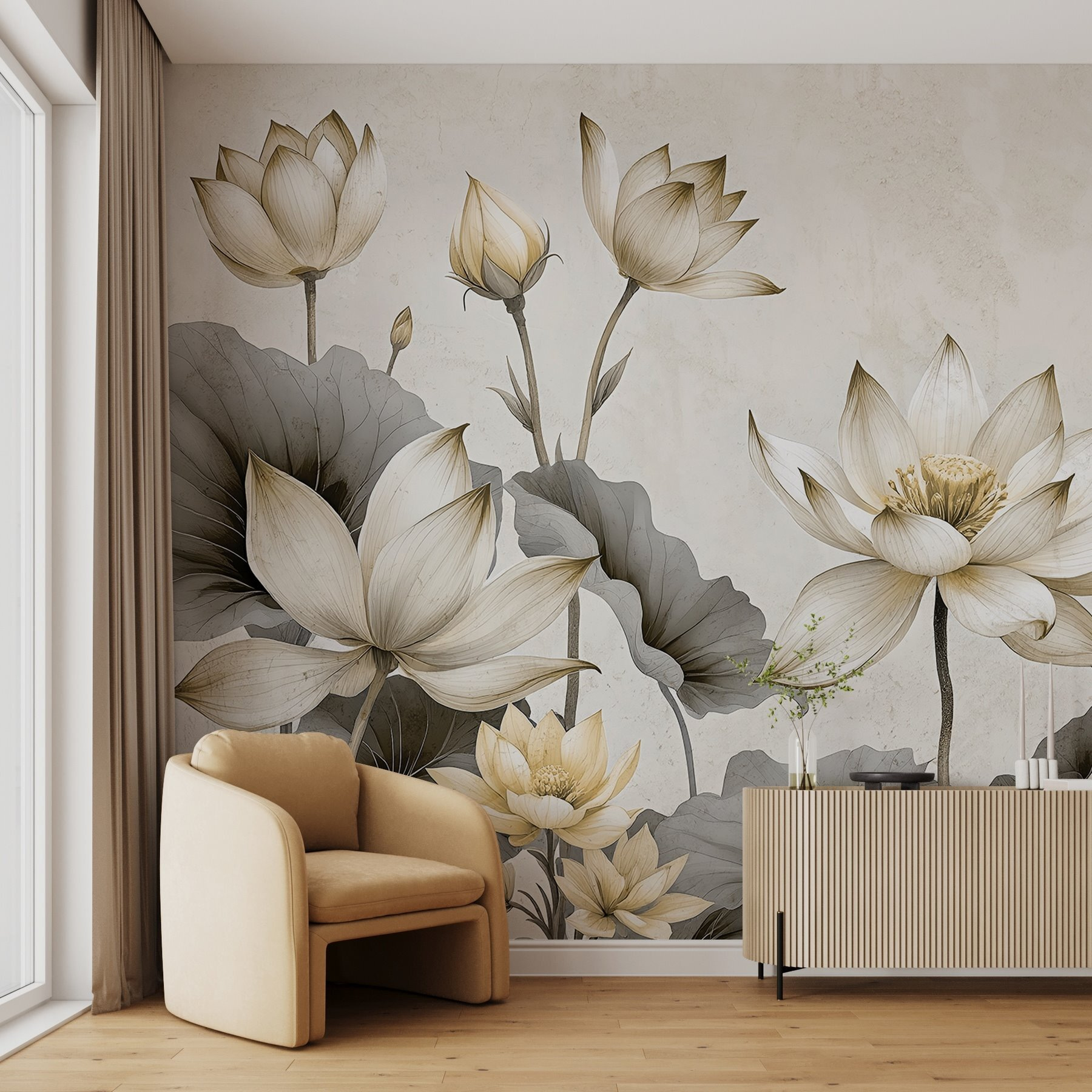 Premeňte akýkoľvek priestor pomocou nástennej maľby “Elegantné kvety v pokojných tónoch”, kde sa kvetinová krása snúbi s pokojnou paletou. Predstavte si, že vstúpite do miestnosti, ktorá pripomína pokojnú záhradu, kde nežné kvety pôsobia pokojným dojmom. Jemné farby vytvárajú útulnú atmosféru, ktorá je ideálna na relaxáciu po dlhom dni. Predstavte si slnečné popoludnie, popíjanie čaju s týmito úžasnými kvetmi ako kulisou, ktorá vám našepkáva pokoj. Je to ako mať závan čerstvého vzduchu priamo na stene. Táto nástenná maľba nie je len dekoráciou; je to malý kúsok pokoja, ktorý dodá charakter každej miestnosti. Nebuďte prekvapení, ak sa priatelia zastavia a budú obdivovať – je to takýto kúsok!