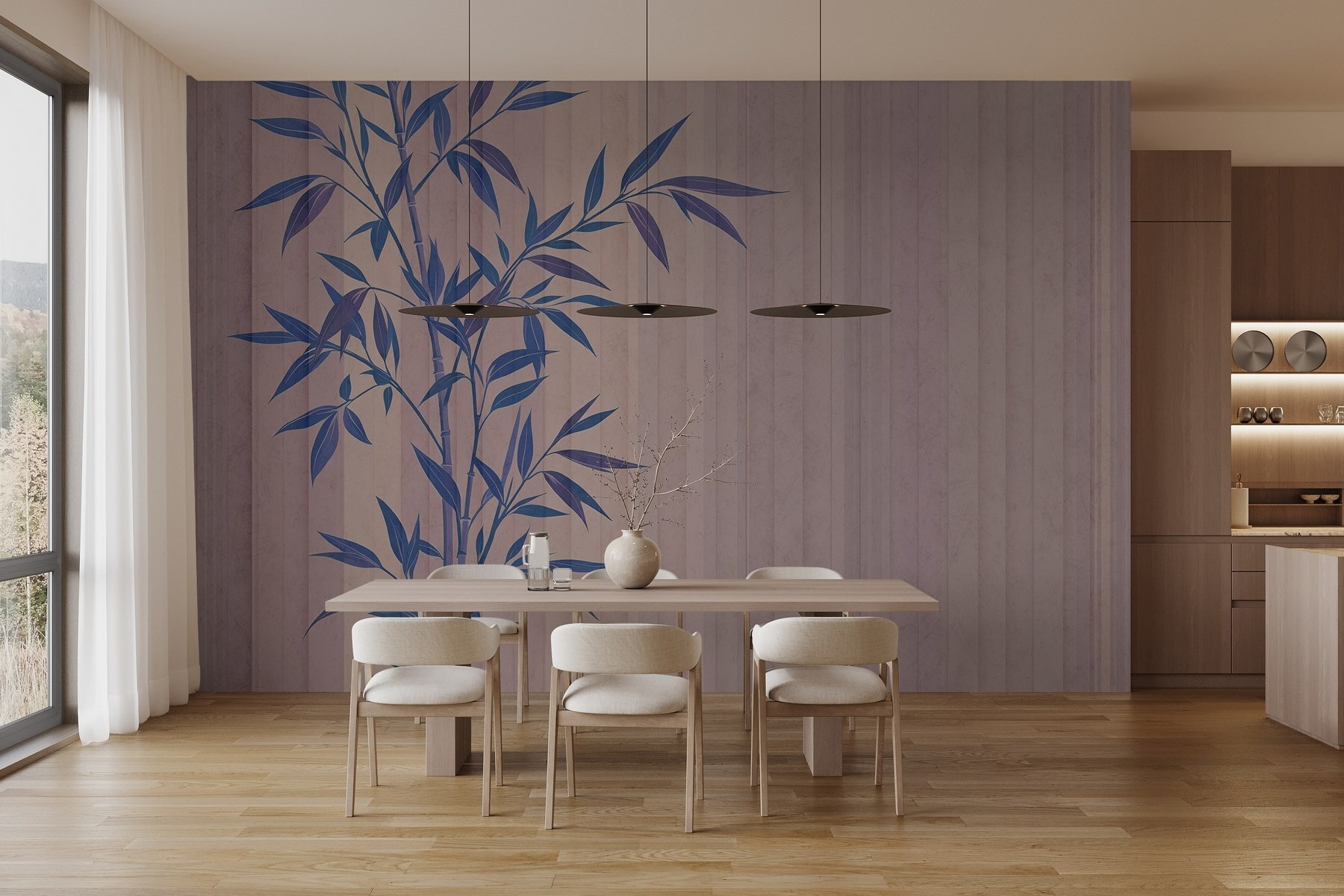 Premeňte akýkoľvek priestor na tropický raj pomocou tejto očarujúcej nástennej maľby s elegantnými modrými listami. Predstavte si, že sa zobudíte, pozriete sa na túto listnatú krásu a okamžite sa budete cítiť o niečo uvoľnenejšie a inšpiratívnejšie. Jemné, pastelové pozadie vytvára upokojujúcu atmosféru, ktorá je ideálna pre útulné kútiky alebo rozjasnenie vašej domácej kancelárie. Je to, akoby ste si do interiéru priniesli kúsok prírody bez toho, aby ste museli čokoľvek zalievať – výborne! Zakaždým, keď prejdete okolo, pošepká vám jemnú spomienku na slnečné dni a skvelú prírodu, vďaka čomu sa každodenné chvíle budú cítiť trochu výnimočne. Je ideálny pre tých, ktorí túžia po nádychu pokoja vo svojom rušnom živote, a je to nádherný spôsob, ako dodať vašim stenám trochu osobnosti.