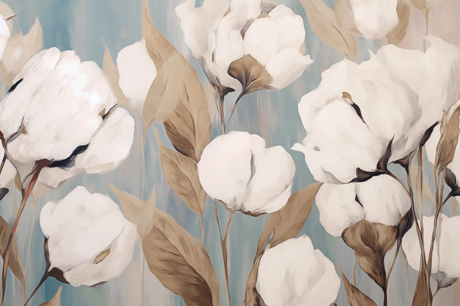 Premeňte akúkoľvek miestnosť pomocou tejto nádhernej nástennej maľby s bielymi kvetmi a hnedými listami, ktorá je navrhnutá tak, aby vniesla hrejivý a príjemný pocit. Predstavte si, že vstúpite do priestoru zdobeného jemnými okvetnými lístkami a nežnými odtieňmi – je to ako mať záhradu priamo na stenách! Ideálne pre pokojné chvíle pri šálke čaju alebo pri hostení priateľov, ktorí budú obdivovať váš elegantný vkus. Zemité tóny sa bez námahy prelínajú a dodávajú prírode útulné miesto v interiéri. Predstavte si, ako tento kúsok môže vyvolať rozhovory o obľúbených kvetoch alebo lenivých popoludniach strávených vychutnávaním si malých životných radostí. Skutočný zlepšovák atmosféry!