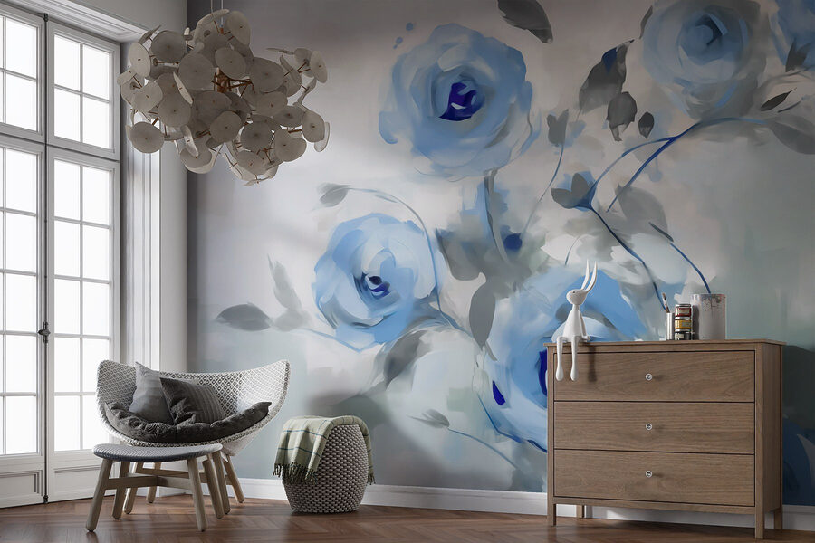 Premeňte svoje steny na zasnenú záhradu s touto úžasnou nástennou maľbou modrých kvetov. Predstavte si, že vstúpite do miestnosti, kde nádherné kvety v upokojujúcich odtieňoch modrej tancujú po stene a bez námahy rozjasňujú priestor. Je to ako mať kúsok prírody priamo doma, bez potreby zeleného palca. Priatelia sa možno dokonca budú čudovať, že ste si z obývačky urobili kvetinárstvo!