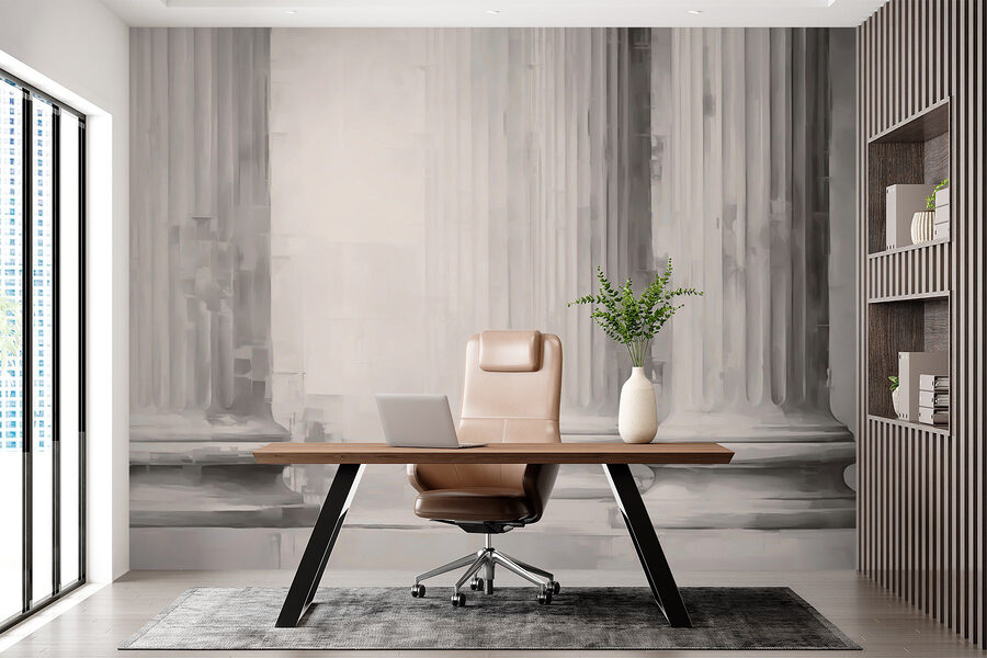 Premeňte akúkoľvek miestnosť pomocou tejto úžasnej nástennej maľby s výraznou skupinou stĺpov a pilierov. Je to ako pozvať do svojho priestoru kus starobylej architektúry a dodať mu atmosféru, ktorá našepkáva eleganciu a silu. Predstavte si, že vstúpite do svojej obývačky a pocítite pocit vznešenosti, akoby ste sa preniesli na majestátne nádvorie.