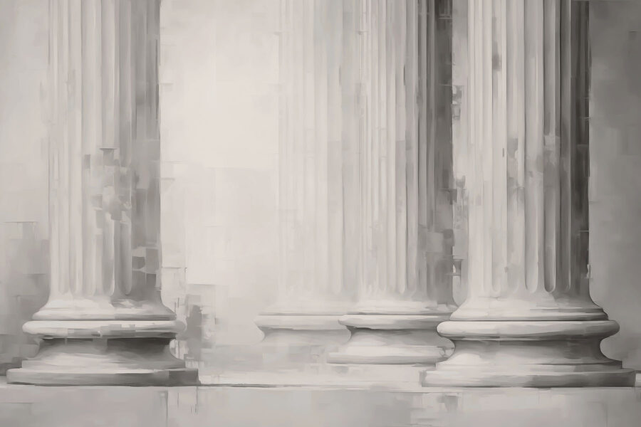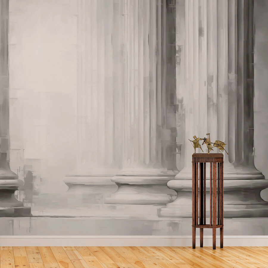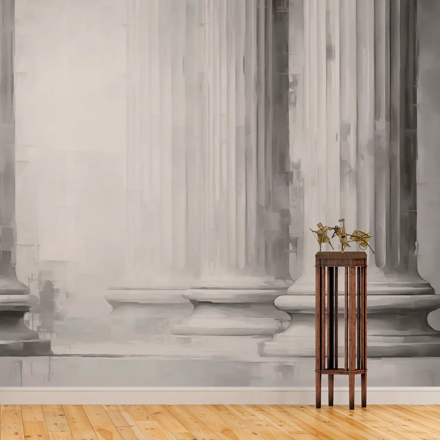 Premeňte akúkoľvek miestnosť pomocou tejto úžasnej nástennej maľby s výraznou skupinou stĺpov a pilierov. Je to ako pozvať do svojho priestoru kus starobylej architektúry a dodať mu atmosféru, ktorá našepkáva eleganciu a silu. Predstavte si, že vstúpite do svojej obývačky a pocítite pocit vznešenosti, akoby ste sa preniesli na majestátne nádvorie.
