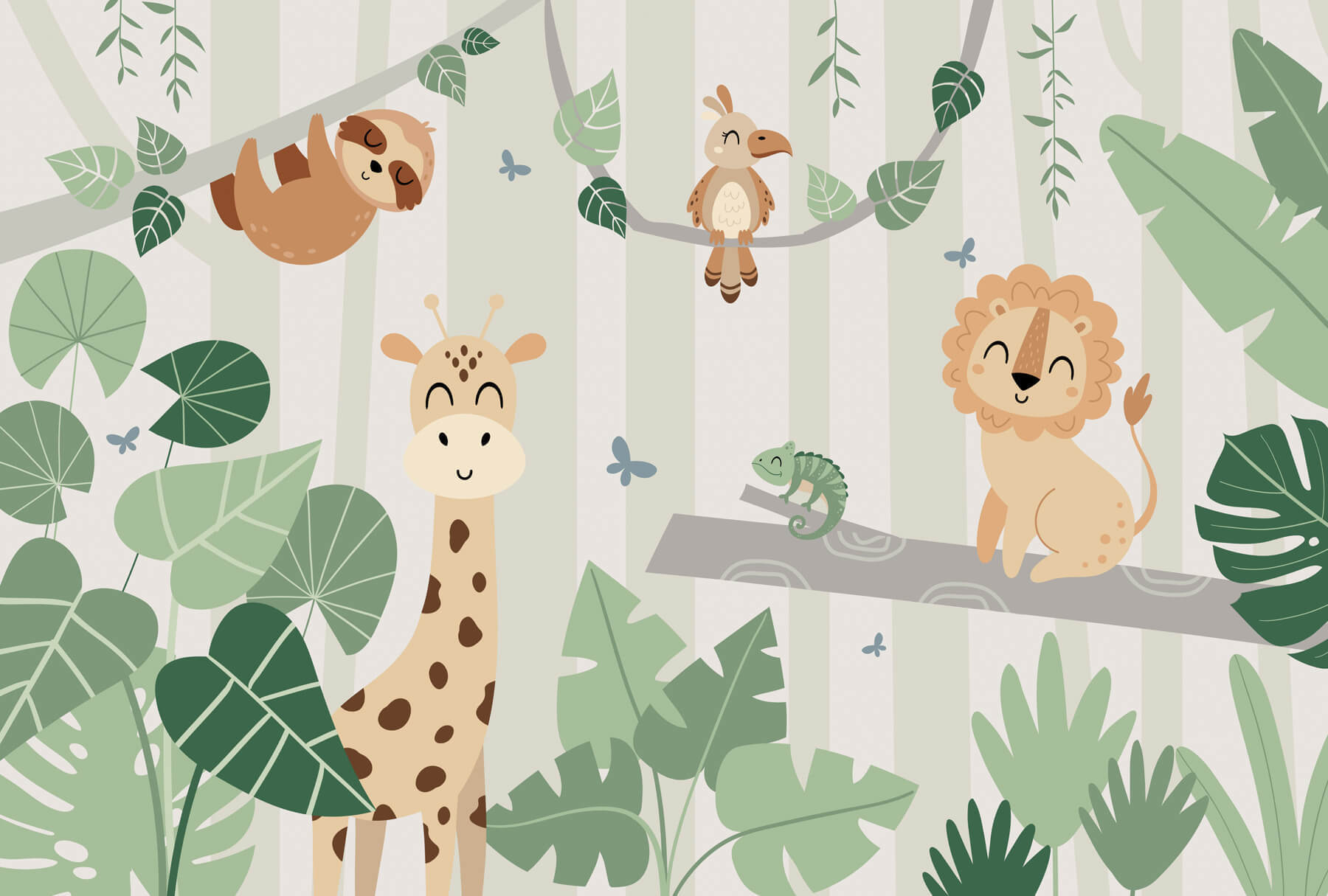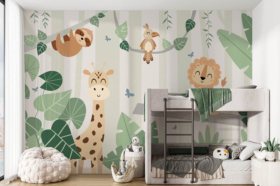 Premeňte akýkoľvek priestor pomocou tejto rozkošnej nástennej maľby džungle s očarujúcou skupinou zvieracích postavičiek, medzi ktorými je veselá žirafa, uvoľnený leňochod a hravý lev. Je to ako vstúpiť do hravého raja vždy, keď vstúpite do miestnosti. Predstavte si, ako sa deti chichocú, zatiaľ čo sú obklopené sviežou zeleňou a svojimi chlpatými priateľmi – môžu dokonca predstierať, že sú prieskumníci na vzrušujúcom safari! Každý detail prináša pocit zábavy a úžasu, ktorý je ideálny na rozvíjanie predstavivosti. Táto nástenná maľba nielen rozžiari steny, ale prinesie aj bezstarostnú atmosféru na hranie, spanie alebo kedykoľvek inokedy. Kto by nechcel mať doma svoje vlastné útočisko v džungli?