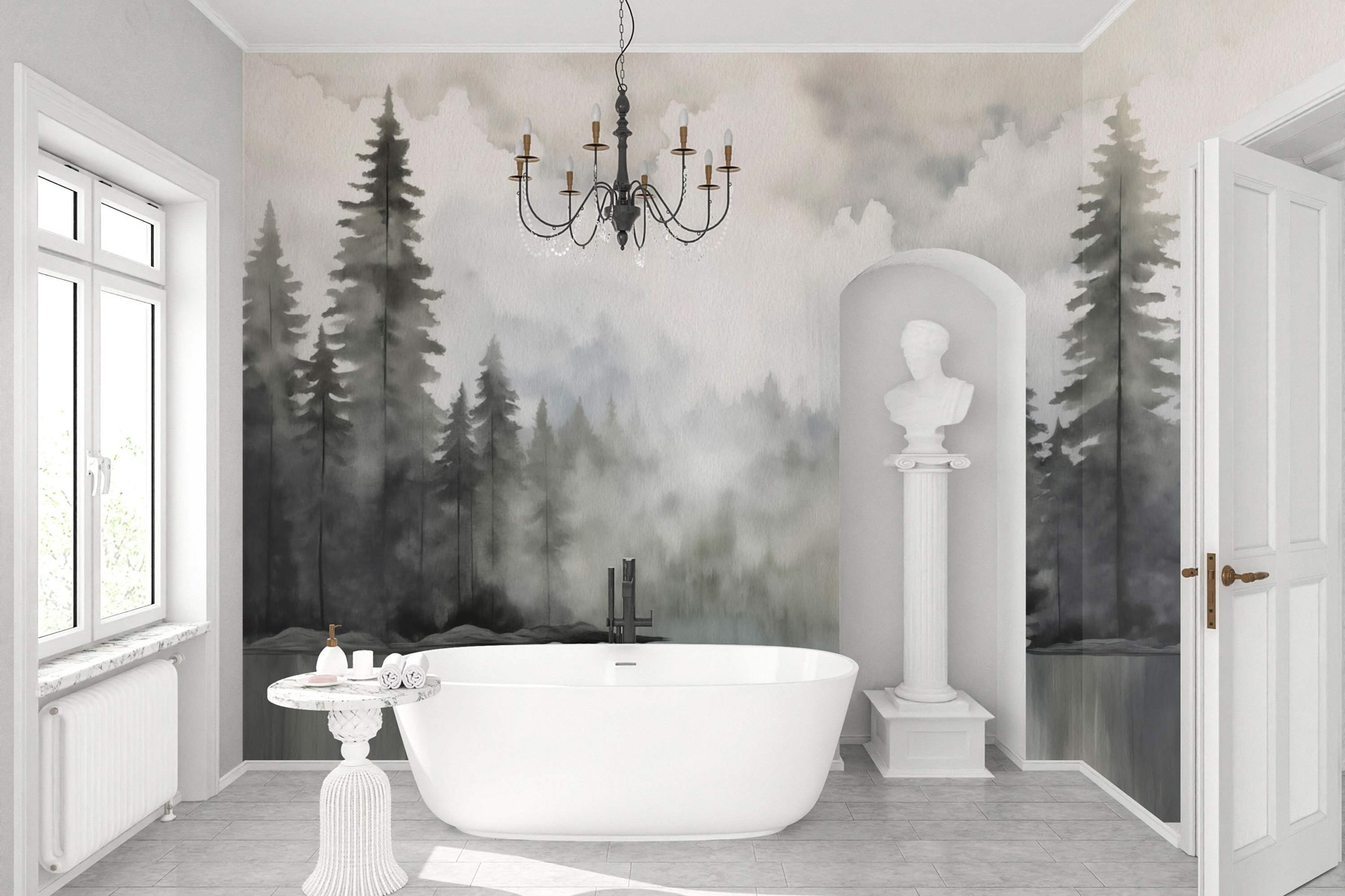 Predstavte si útulné večery strávené tu, možno popíjaním čaju alebo schúľaním sa s knihou, pretože nástenná maľba pozýva krásu vonkajšieho prostredia dovnútra. Je to ako mať okno, ktoré rámuje zasnenú krajinu a bez námahy prináša pokoj lesa na vaše steny. Navyše je to skvelý podnet na konverzáciu – priatelia budú zvedaví, či ide o tajný únik alebo len o neuveriteľné umenie!