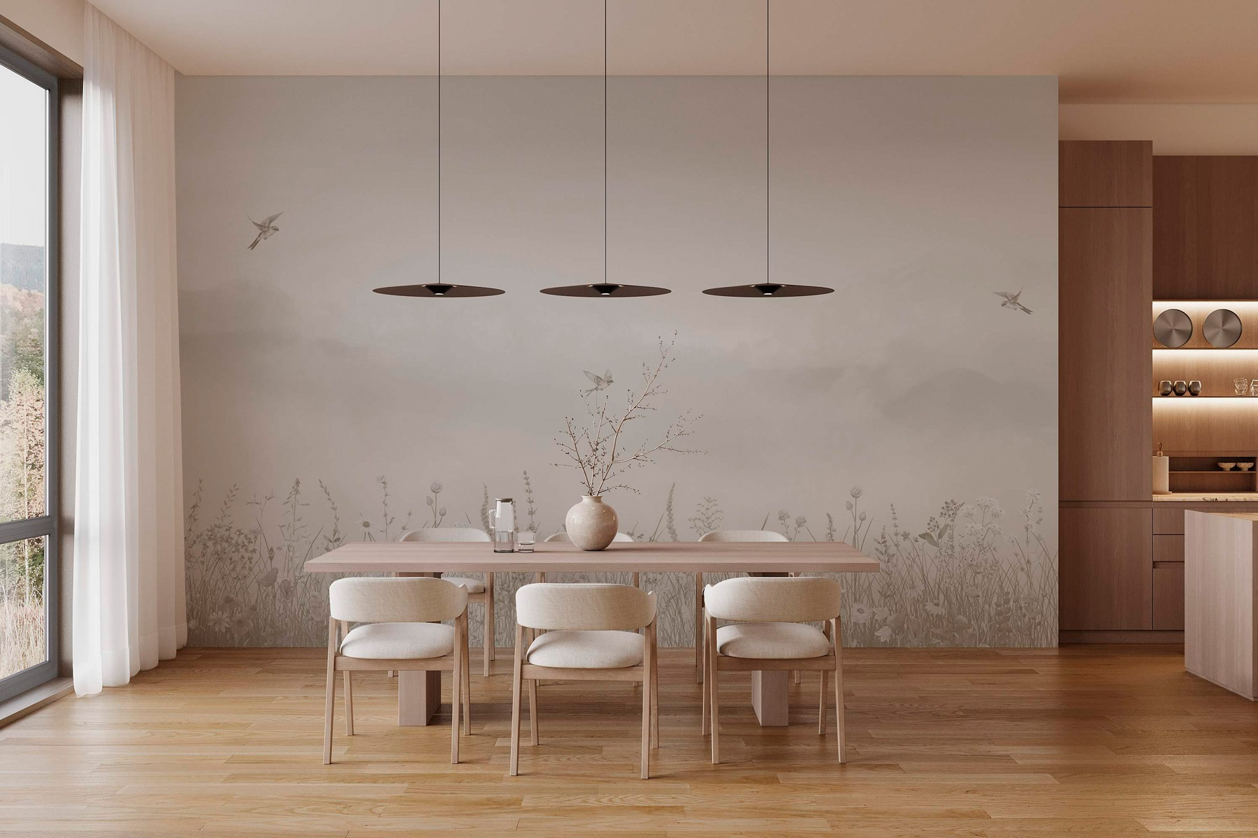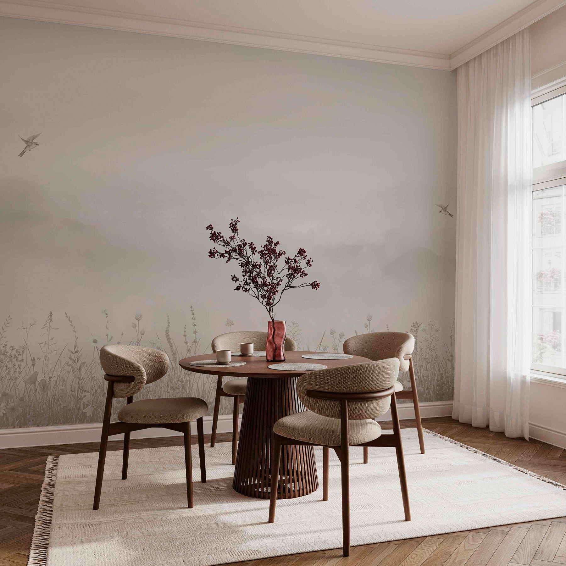 Premeňte akýkoľvek priestor na pokojný únik s touto očarujúcou nástennou maľbou vtákov plachtiacich nad poľom plným kvetov. Predstavte si, že sa každé ráno zobúdzate s týmto výhľadom – umeleckým dielom prírody, ktoré vám hrá serenády. Jemné tóny sa harmonicky prelínajú a pozývajú do každej miestnosti pokoj. Ideálny pre útulný čitateľský kútik alebo stenu, ktorá potrebuje trochu lásky. Je to ako závan čerstvého vzduchu, len bez kýchania. Navyše, kto by sa nechcel cítiť ako na pokojnej lúke? Táto nástenná maľba sa snaží zachytiť tú atmosféru denného snenia. Prijmite tieto slnečné, šťastné chvíle priamo u vás doma!