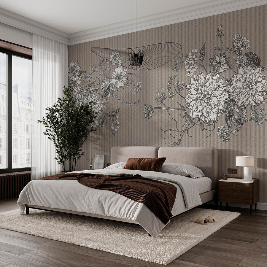 Premeňte akúkoľvek miestnosť na útulné útočisko pomocou tejto úžasnej nástennej maľby – Kvetinová elegancia v harmonickom dizajne. Predstavte si, ako sa vám priamo pred očami rozvíjajú tie nádherne načrtnuté kvety, v ktorých sa miešajú jemné zemité tóny so zložitými detailmi. Je to ako preniesť záhradu do interiéru, bez kýchania. Predstavte si, že sa každý deň zobudíte s týmto pôvabným kvetom, ktorý na vás vykukne a okamžite vám zdvihne náladu. Či už ide o tichý kútik na čítanie, alebo o nepríjemnú stenu, ktorú všetci ignorujú, táto nástenná maľba vám ukradne celú šou. Kto by povedal, že kvetinový dekor môže byť taký osviežujúci?